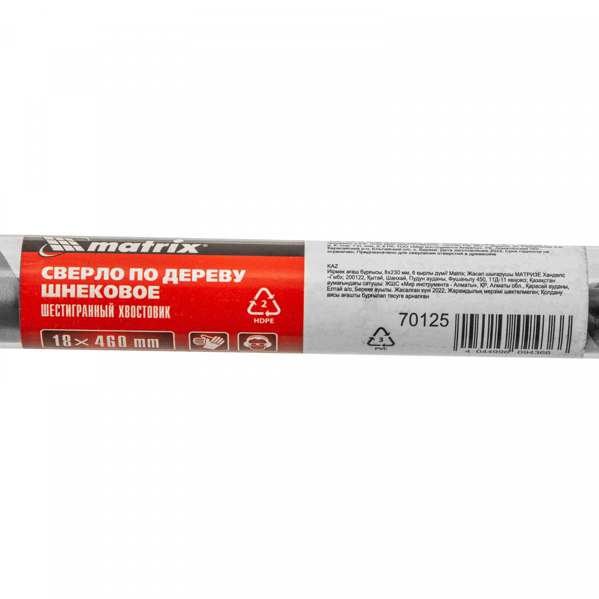 Сверло по дереву шнековое, 18 х 460 мм, шестигранный хвостовик Matrix