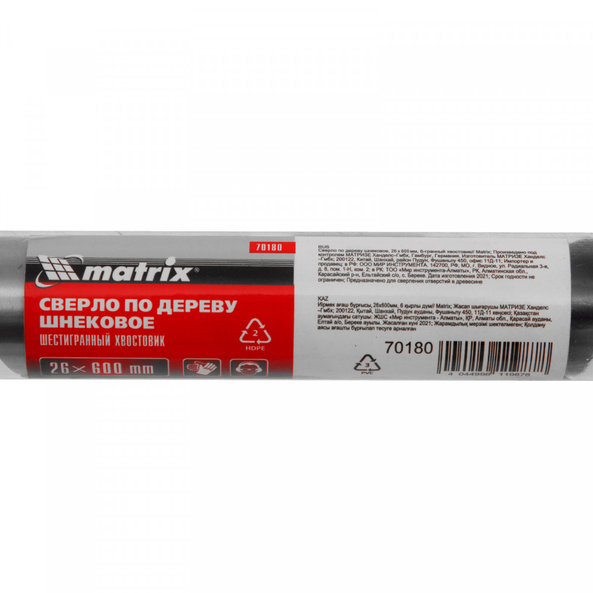 Сверло по дереву шнековое, 26 х 600 мм, шестигранный хвостовик Matrix