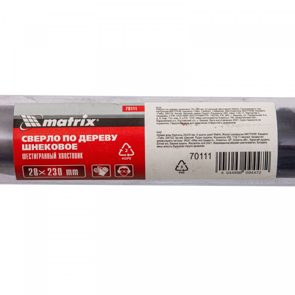 Шнековое сверло по дереву Matrix 70111 размером 28 х 230 мм, с 6-гранным хвостовиком, предназначено для получения глубоких отверстий. Подходит для работы как с мягкими, так и с твердыми породами древесины. Конструкция сверла рассчитана на интенсивное использование с высокими нагрузками в ходе строительных, ремонтных и отделочных работ.