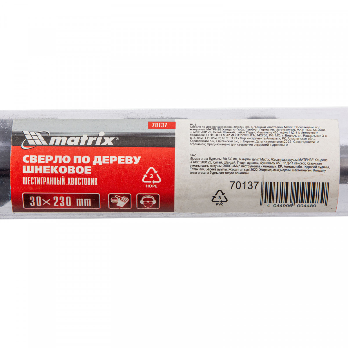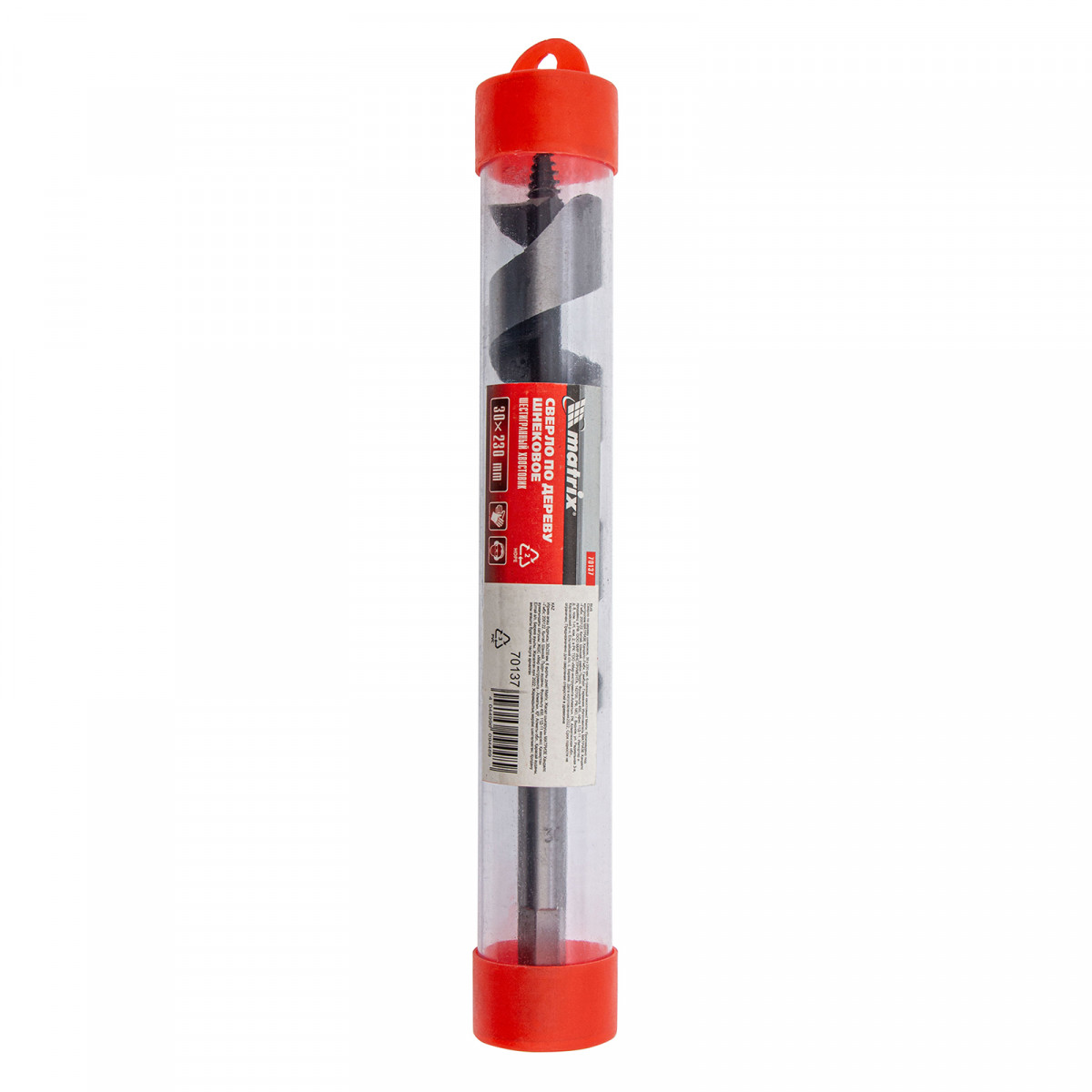 Сверло по дереву шнековое, 30 х 230 мм, шестигранный хвостовик Matrix