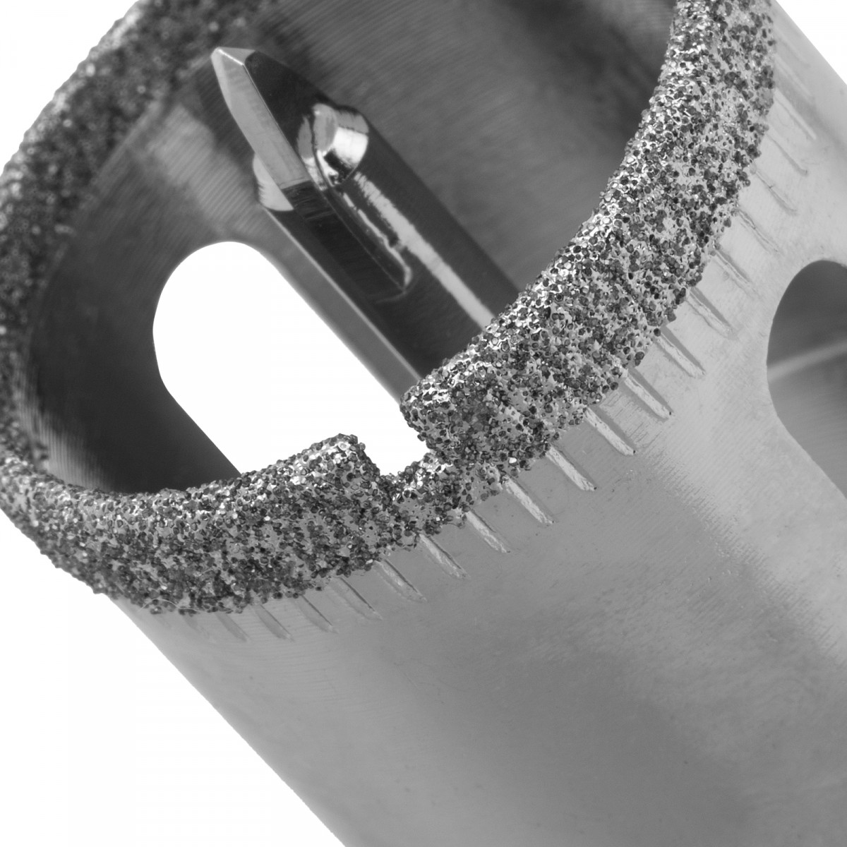 • Точное позиционирование — центрирующее сверло быстро заглубляется в материал, не давая коронке сдвигаться во время сверления.