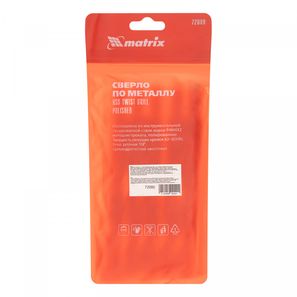 Сверло по металлу, 18 мм, полированное, HSS, 5 шт, цилиндрический хвостовик Matrix
