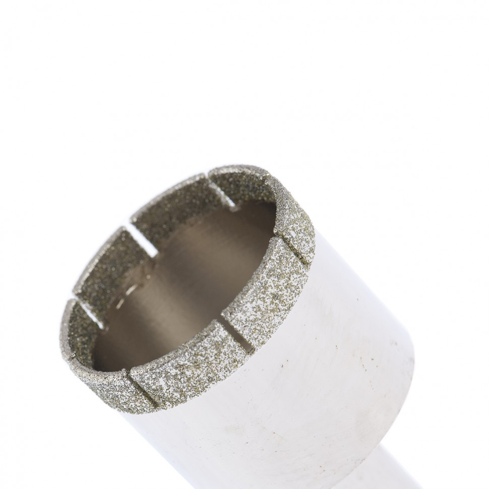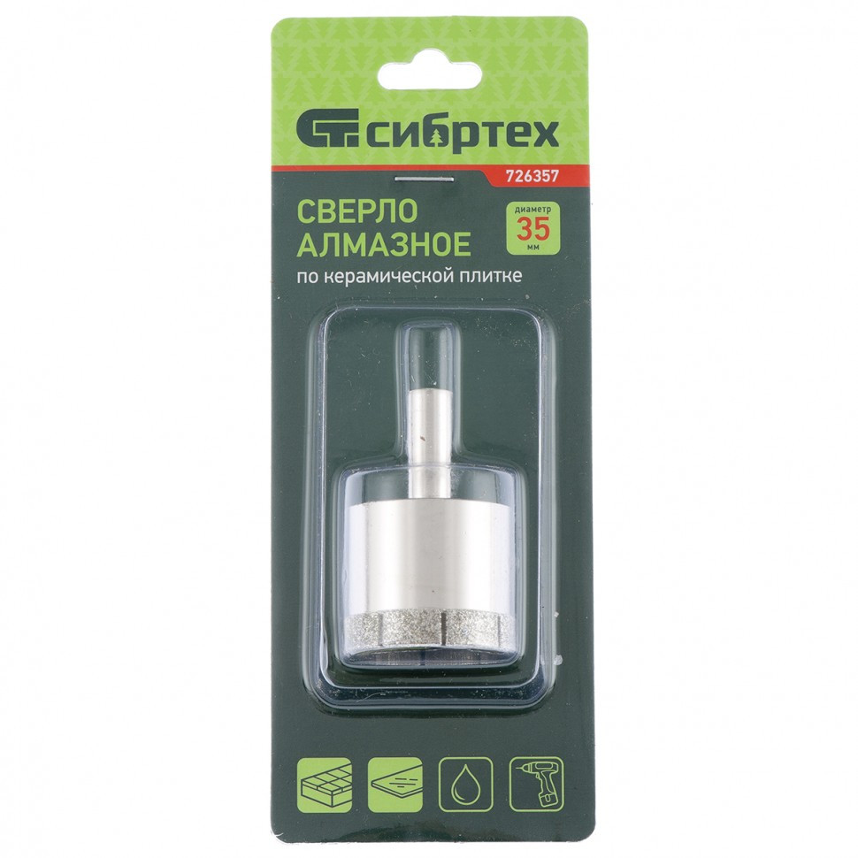 Сверло Сибртех 726357 размером 35 х 55 мм, с цилиндрическим хвостовиком, используется для получения ровных отверстий без сколов в стекле и керамической плитке. Устанавливается в патрон дрели или шуруповерта, работающих в диапазоне 350-700 об/мин. Во время работы рекомендуется применять водяное охлаждение — это существенно увеличит ресурс оснастки. Использование кондуктора (арт. 72830) позволяет точно позиционировать сверло и облегчает засверливание. Оснастка подходит для выполнения работ небольшого объема и рекомендована для использования в быту.