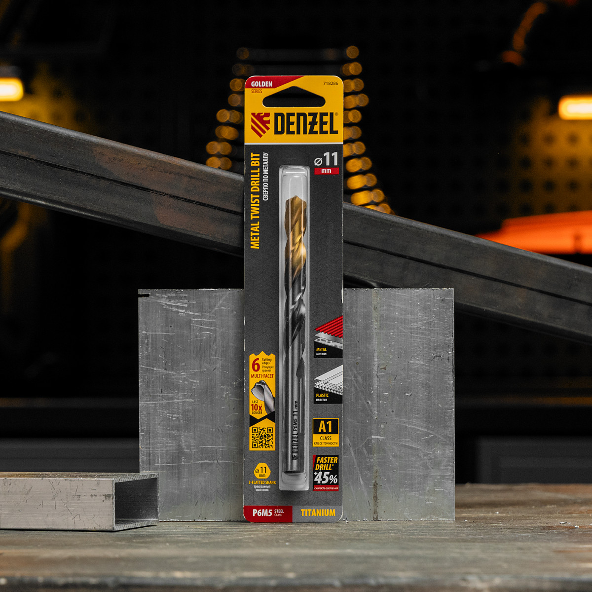 Спиральное сверло по металлу Denzel Golden Tip 718286 из стали P6M5, размером 11 х 142 мм, с многогранной заточкой, предназначено для получения отверстий в легированных сталях и цветных металлах. Многогранная заточка позволяет получать чистые и ровные отверстия практически без заусенцев. Сверлу присвоен класс точности A, что гарантирует высокое качество работ. Оснастка подходит для бытового и профессионального применения.