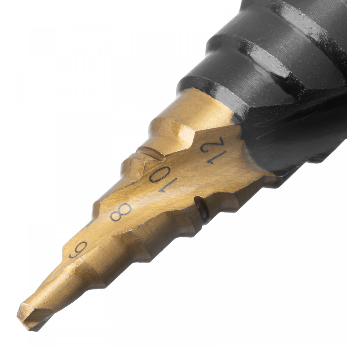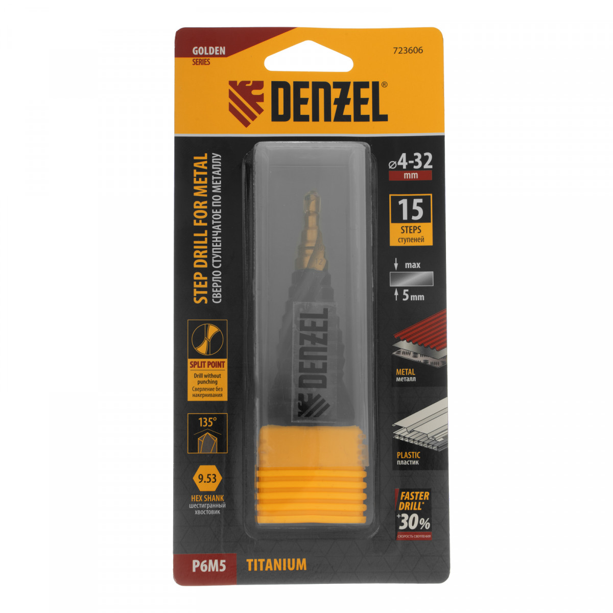 Сверло ступенчатое, 4-6-8-10-12-14-16-18-20-22-24-26-28-30-32 мм, Р6М5, 6-гр. хвостовик Denzel