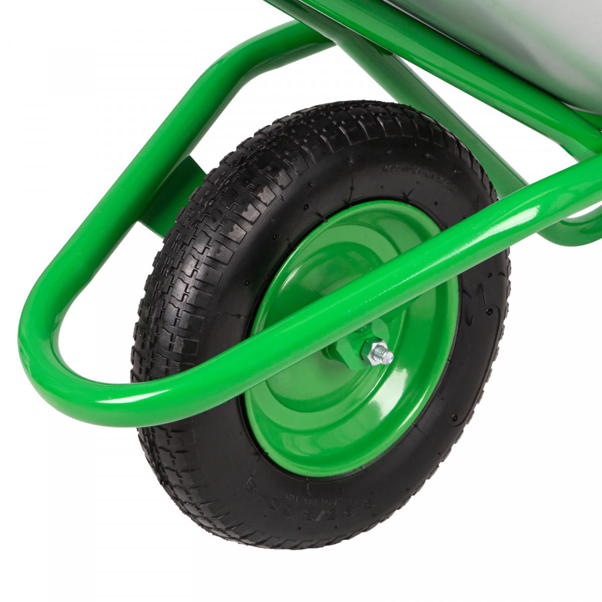 • Хорошая проходимость — 2 шарикоподшипника облегчают вращение колеса, поэтому тачку легко перемещать по неровной поверхности.