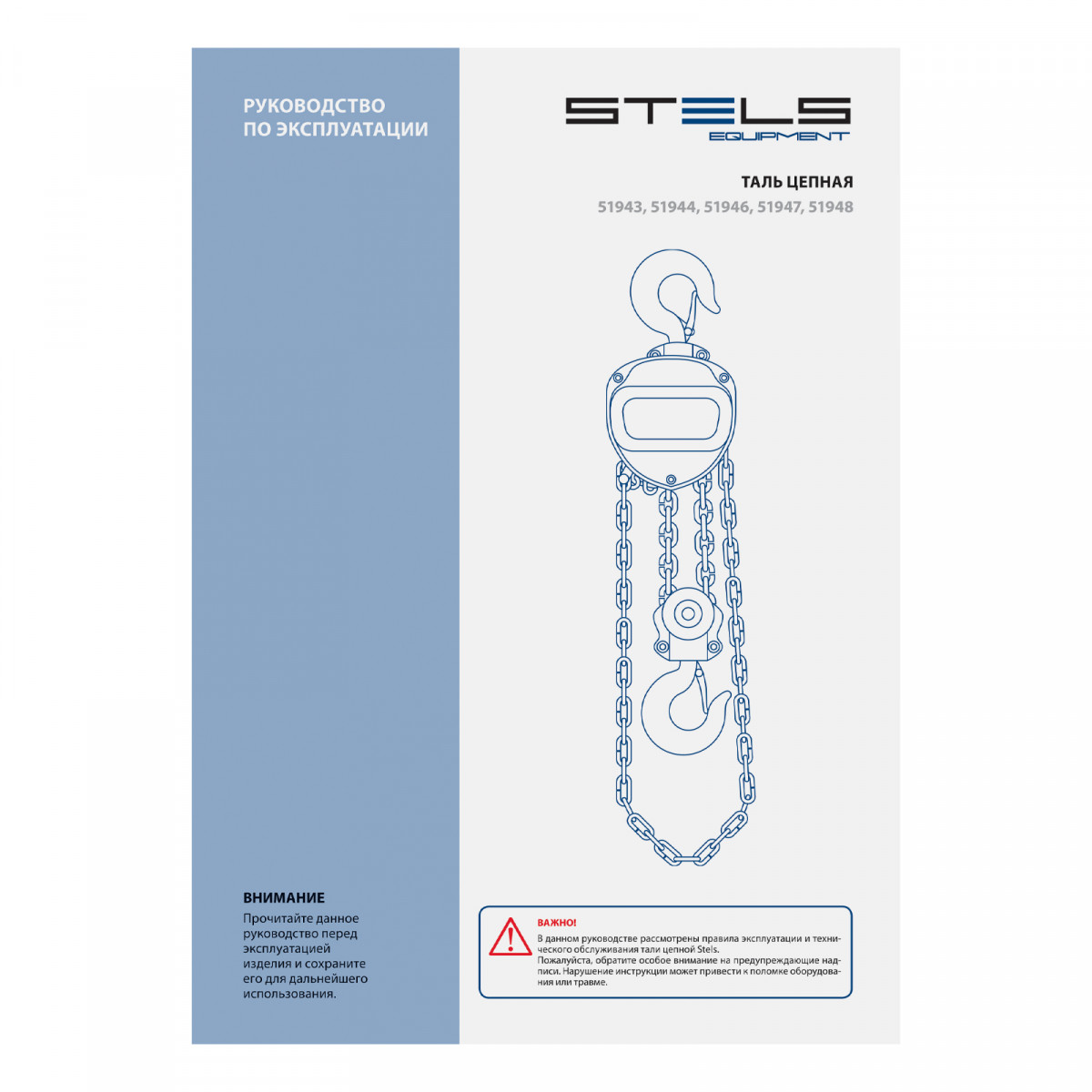 Таль цепная, 1 т, h подъема 2.5 м, расстояние между крюками 350 мм Stels