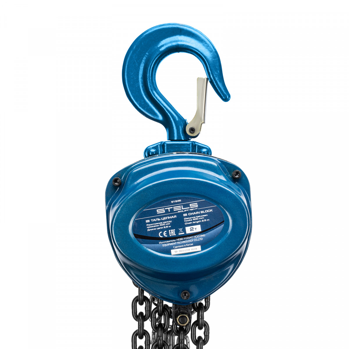Таль цепная, 2 т, h подъема 2.5 м, расстояние между крюками 400 мм Stels