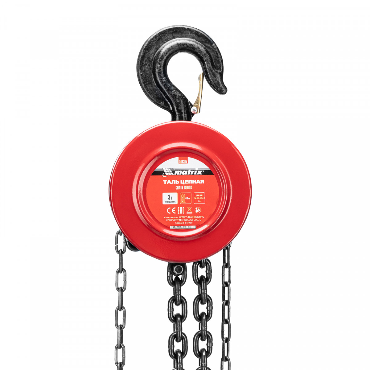Таль цепная, 3 т, H подъема 3 м, расстояние между крюками 470 мм Matrix