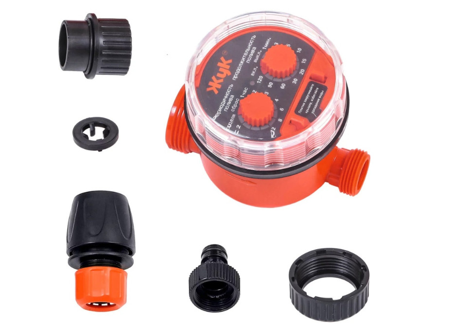 Предназначен для автоматического управления подачей воды для полива в саду, теплице, на грядках.Простая и гибкая настройка в широком диапазоне значений. Программируемый интервал повторения полива, часов: 1, 2, 3, 4, 6, 8, 12, 24, 48, 72, 168 (т.е. интервал полива от 1 часа до 7 суток).Устанавливаемая продолжительность полива, минут: 1, 3, 5, 10, 15, 20, 30, 60, 90, 120 (т.е. длительность одного полива от 1 минуты до 2 часов).Быстросъёмное подключение шланга с помощью адаптера под коннектор.Комплектация: электронный таймер с механическим управлением и шаровым клапаном с входным резьбовым соединением 1/2 и адаптером под коннектор.