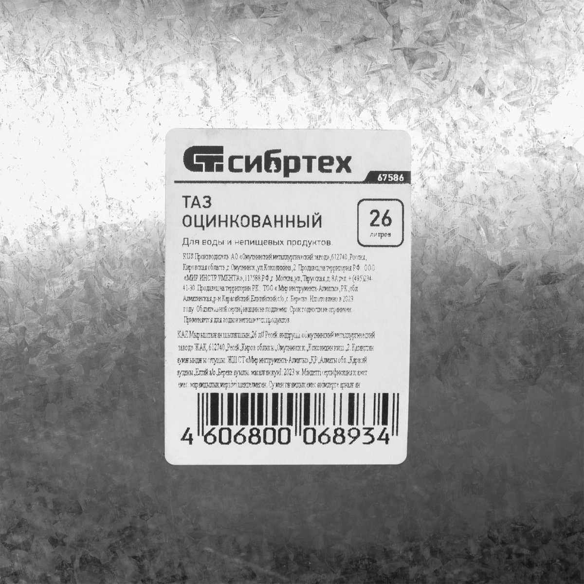 Оцинкованный таз Сибртех 67586 вместительностью 26 л пригодится дома, в саду или на строительной площадке. В нем можно стирать, кипятить воду, хранить и переносить сыпучие материалы: грунт, песок, удобрения. Таз будет полезен при сборе урожая.