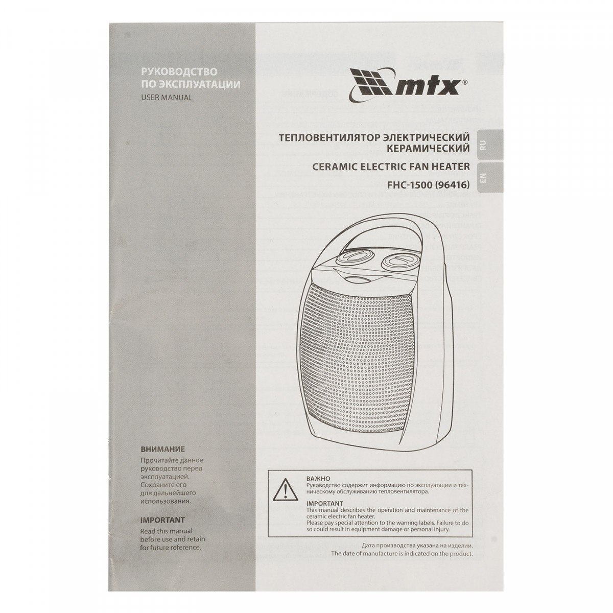 Тепловентилятор электр. керамический FHC-1500, 3 реж., вентилятор, нагрев 750/1500 Вт, MTX