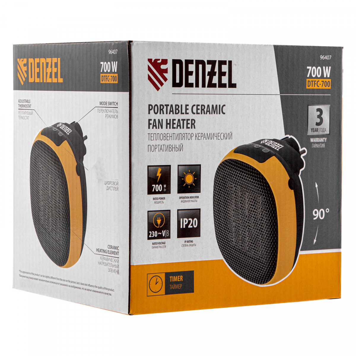 Тепловентилятор портативный керамический DTFC-700, 3 реж. вентилятор, нагрев 700 Вт Denzel