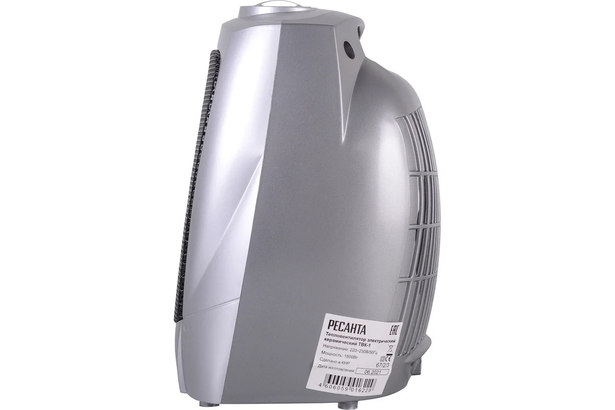 Тепловентилятор РЕСАНТА ТВК-1 мощностью 1800 Вт с керамическим нагревательным элементом и терморегулятором быстро нагреет воздух в помещении площадью до 22 кв. м.