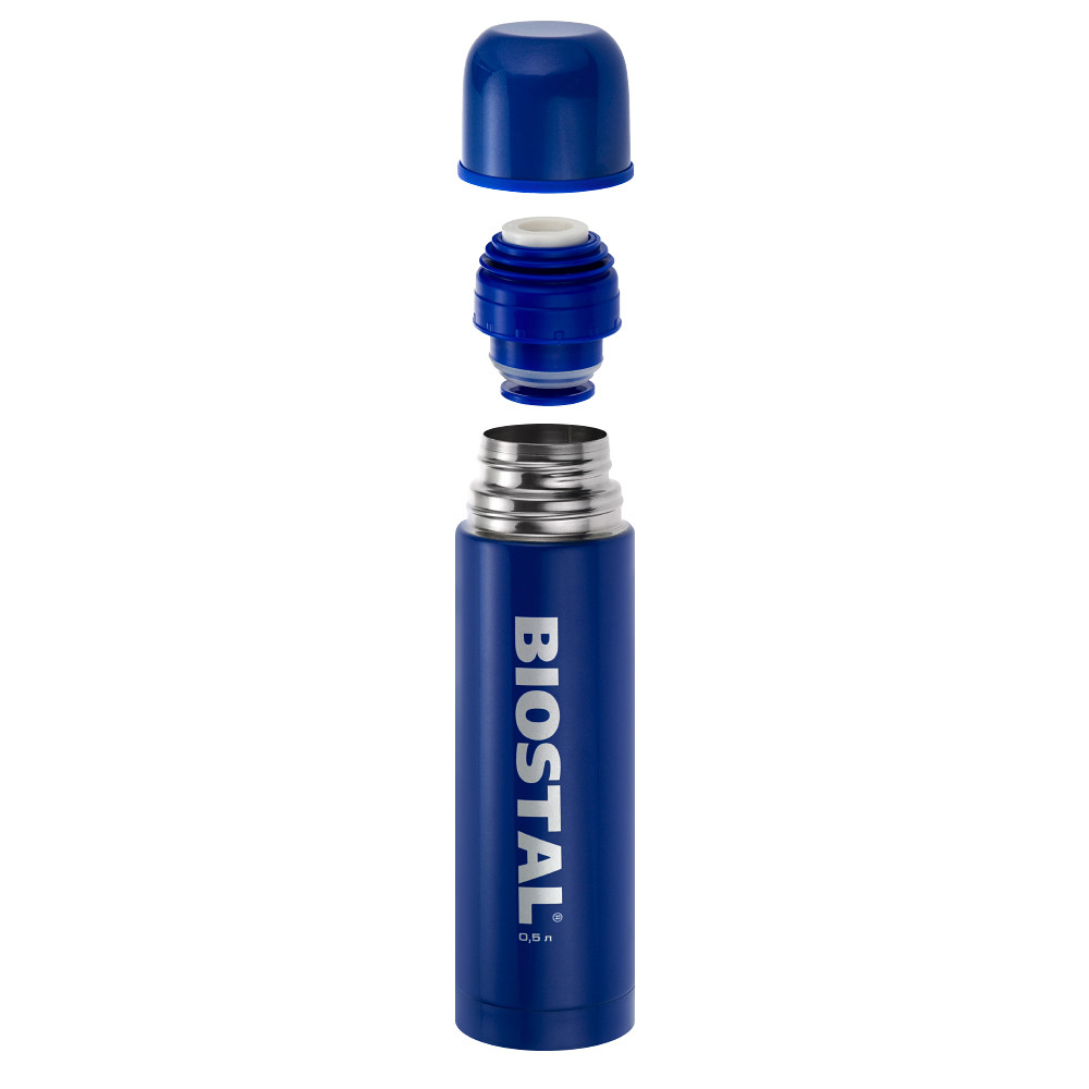 Термос 1,0 л БИОСТАЛЬ с узкой горловиной синий