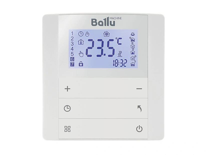 Многофункциональный цифровой программируемый терморегулятор (термостат) BALLU BDT-1 предназначен для поддержания заданной температуры в помещении, применяется совместно с климатической техникой – обогревателями, охлаждающими приборами, вентиляционным оборудованием.