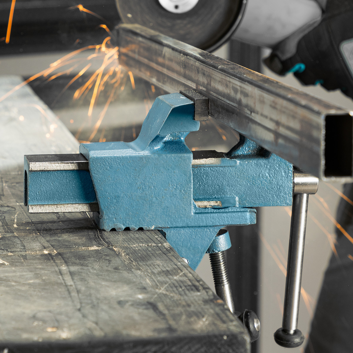 Слесарные тиски 18660, ширина губок 63 мм, с креплением для стола и винтовым зажимом, используются для надежной фиксации заготовок. С их помощью удобно выполнять непрофессиональные столярные и слесарные работы. Тиски с рабочим ходом 80 мм рассчитаны на удержание небольших заготовок.