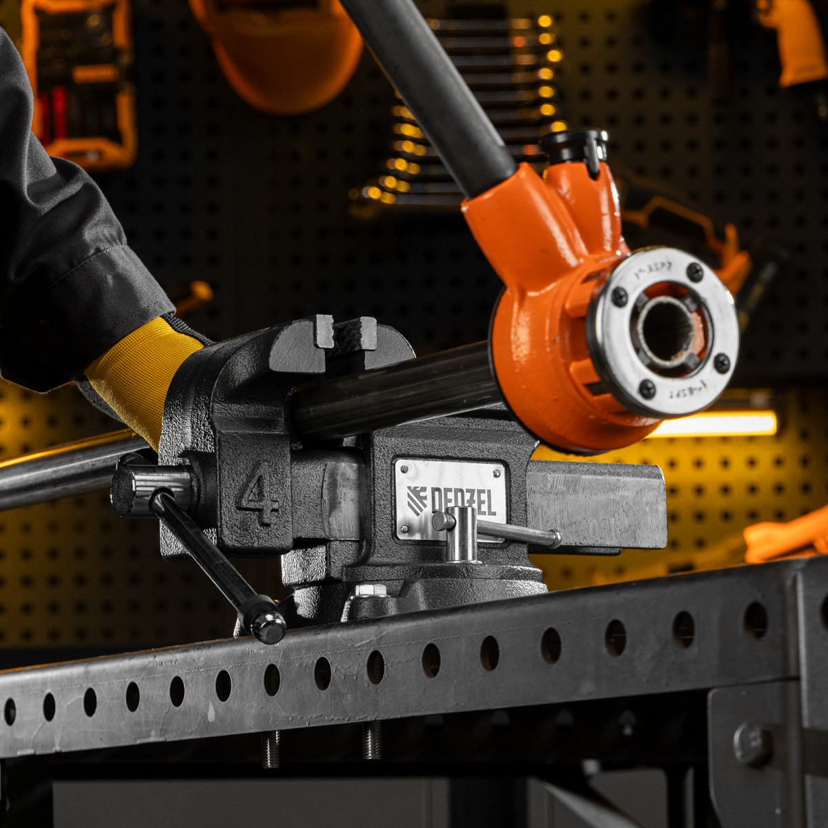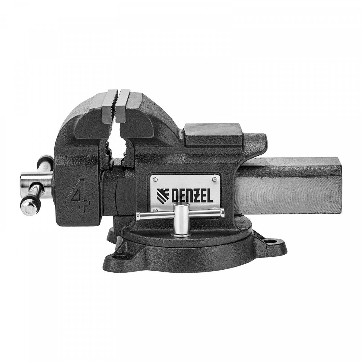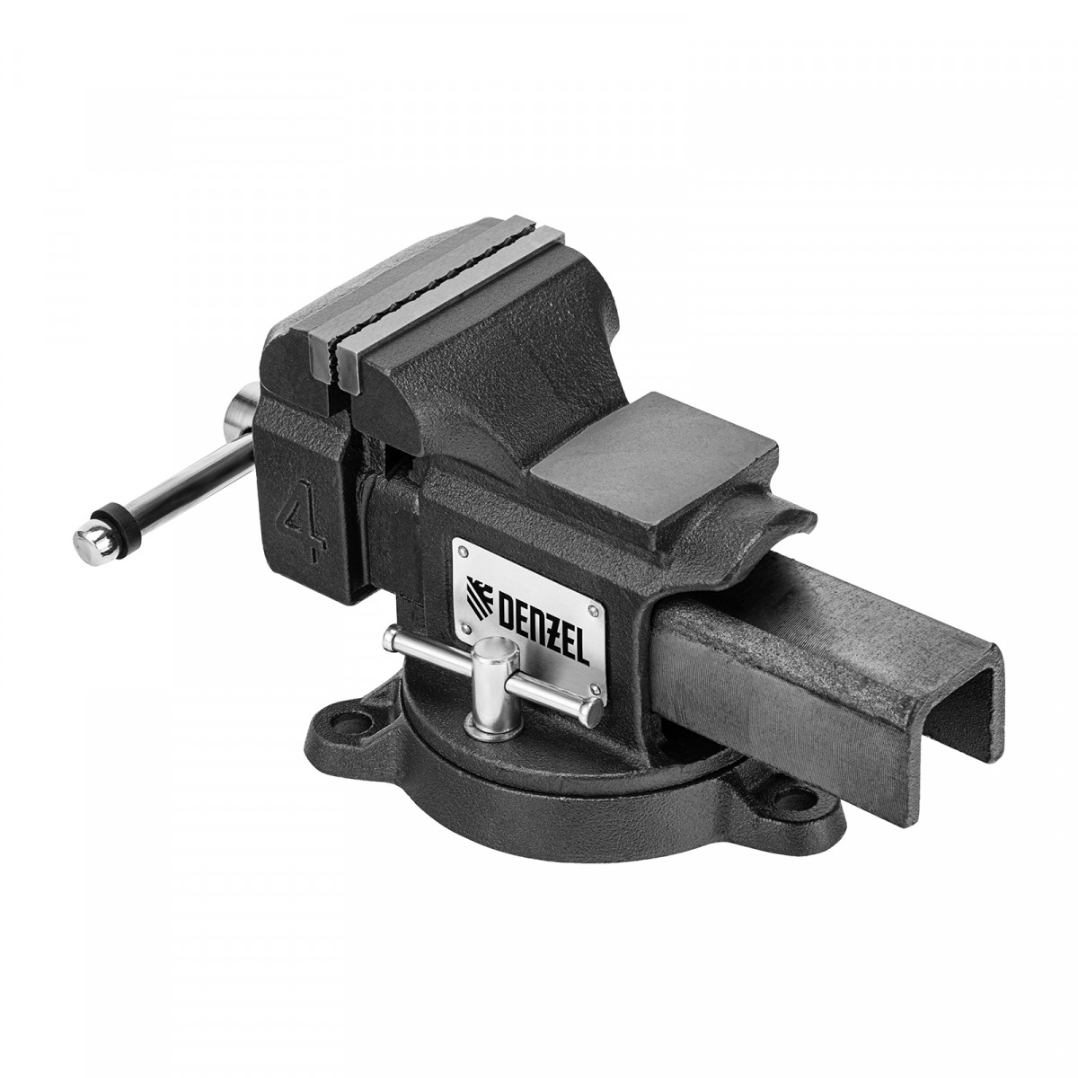 Тиски слесарные BVH-100, 100 мм, поворотные, стальная направляющая, с наковальней //Denzel