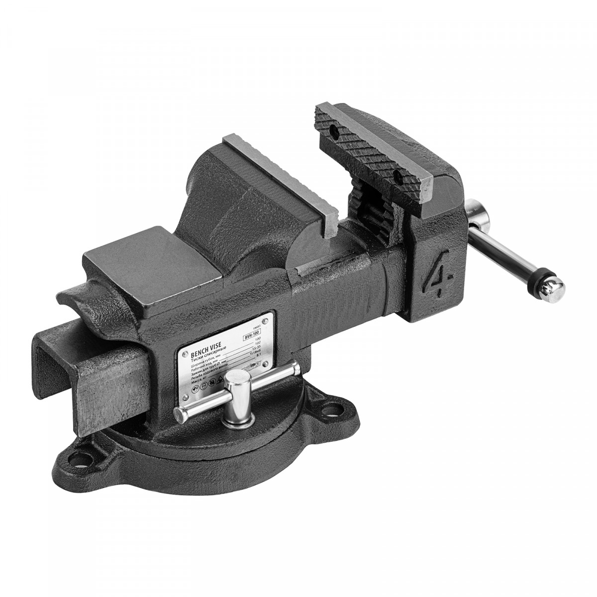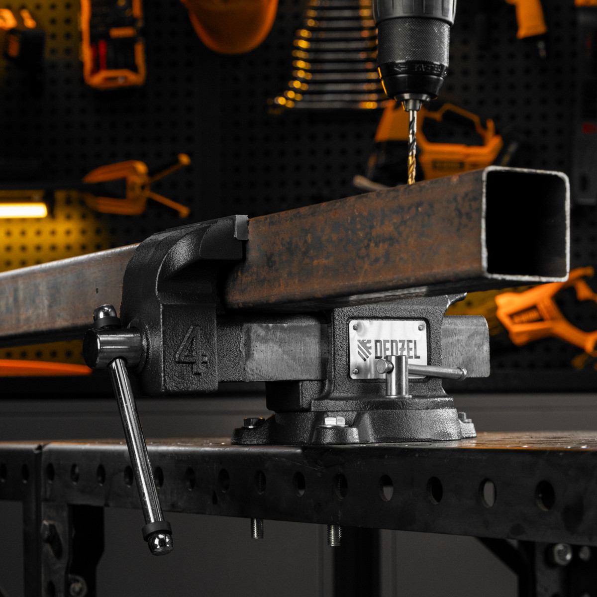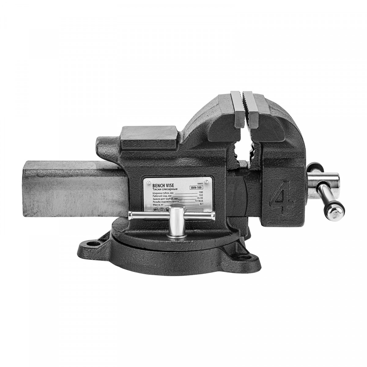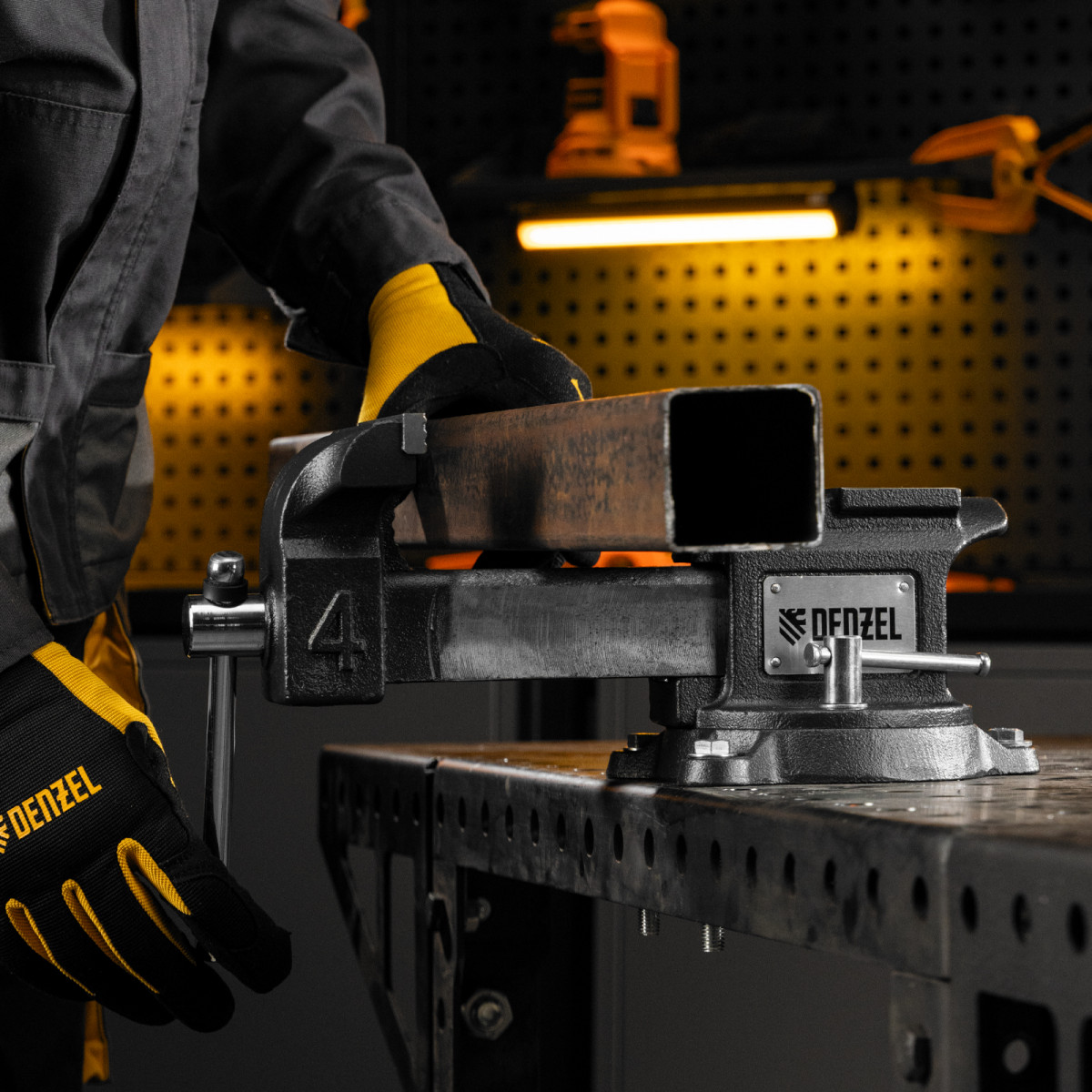 Тиски слесарные BVH-100, 100 мм, поворотные, стальная направляющая, с наковальней //Denzel