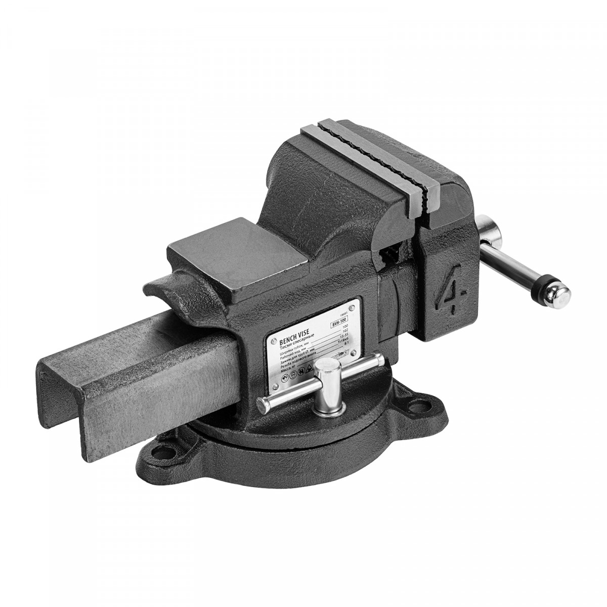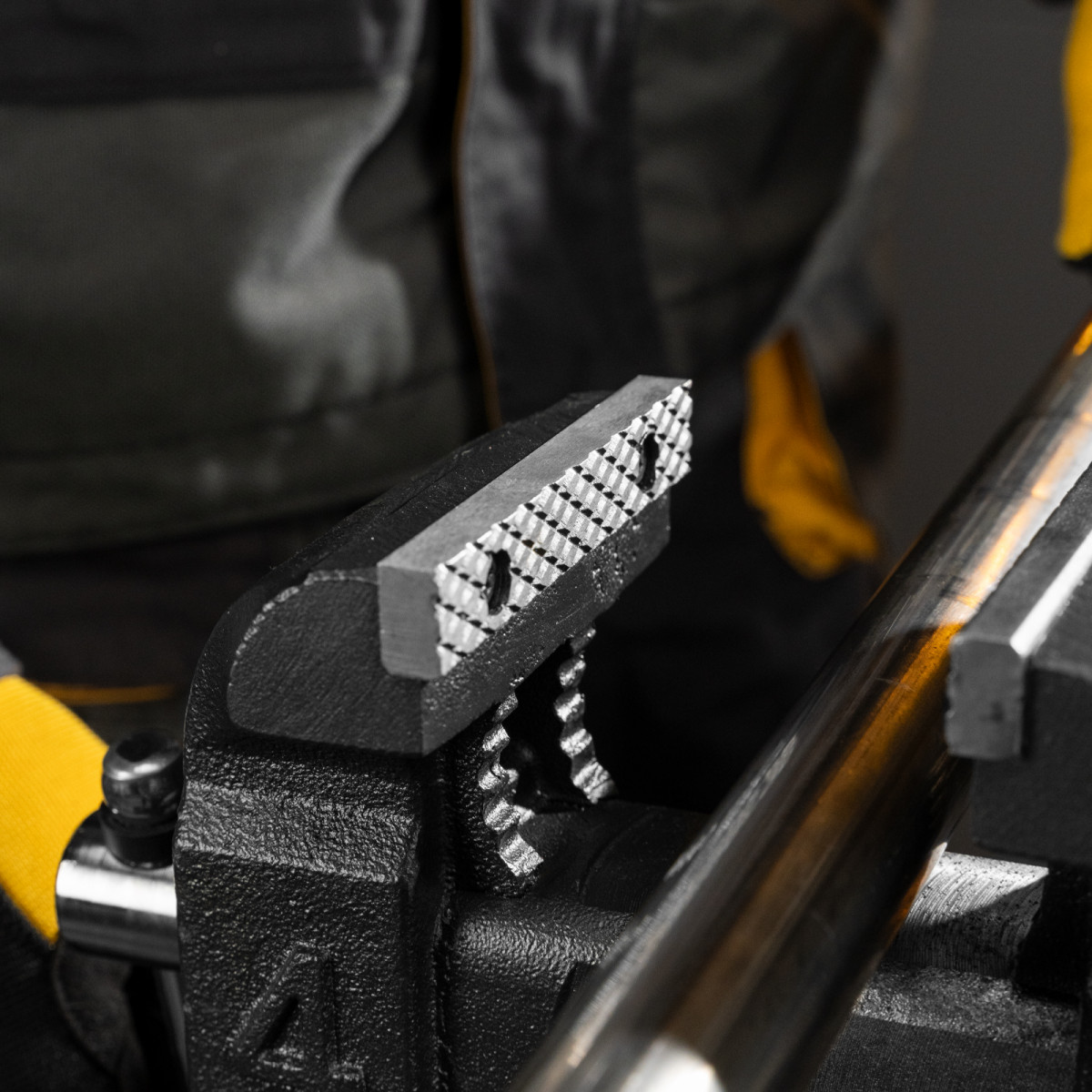 • Функциональность — тиски поворачиваются на 360°, что позволяет менять и выбирать позицию инструмента для удобной работы с заготовкой.