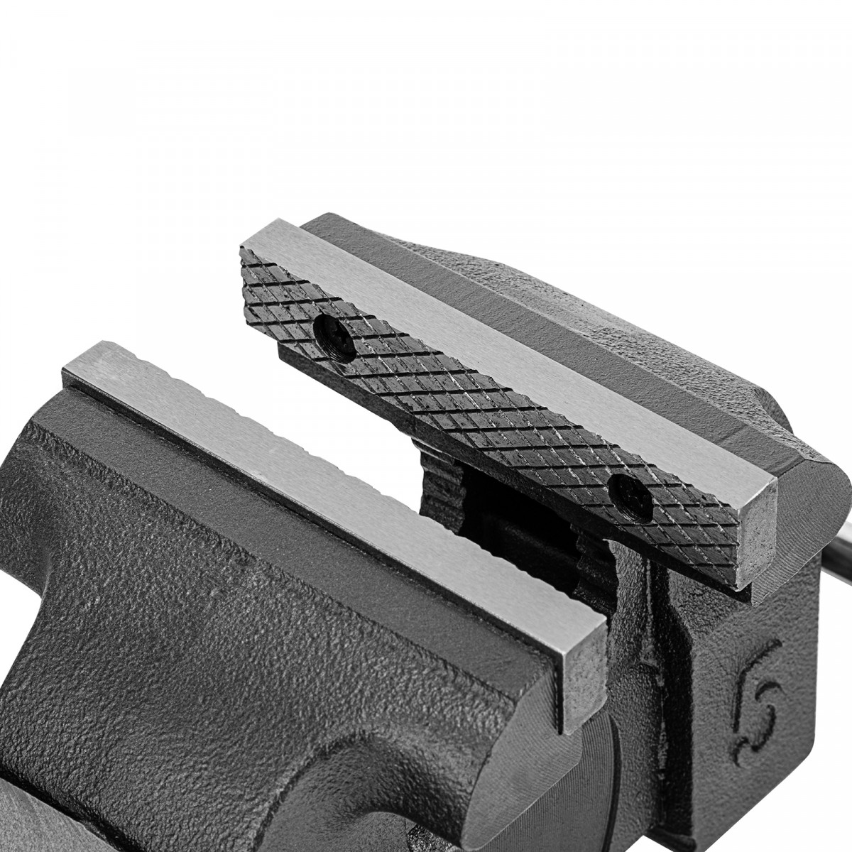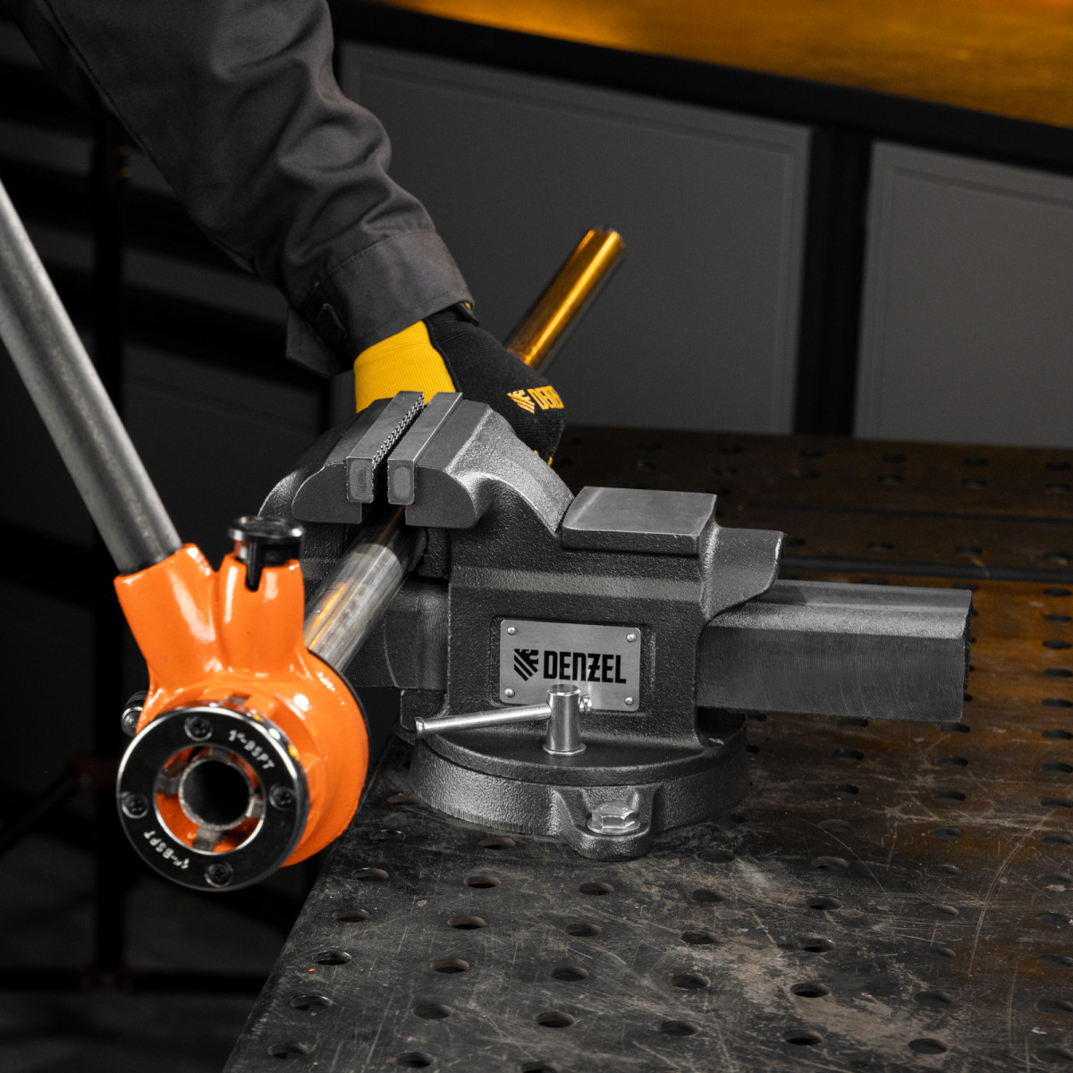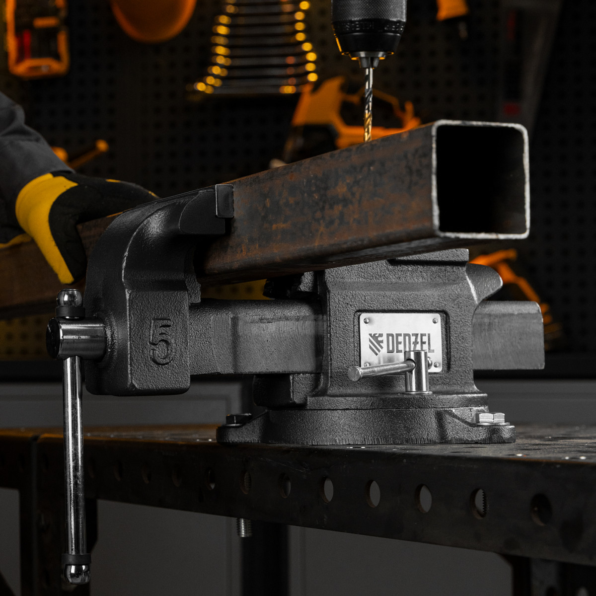Тиски слесарные BVH-125, 125 мм, поворотные, стальная направляющая, с наковальней //Denzel