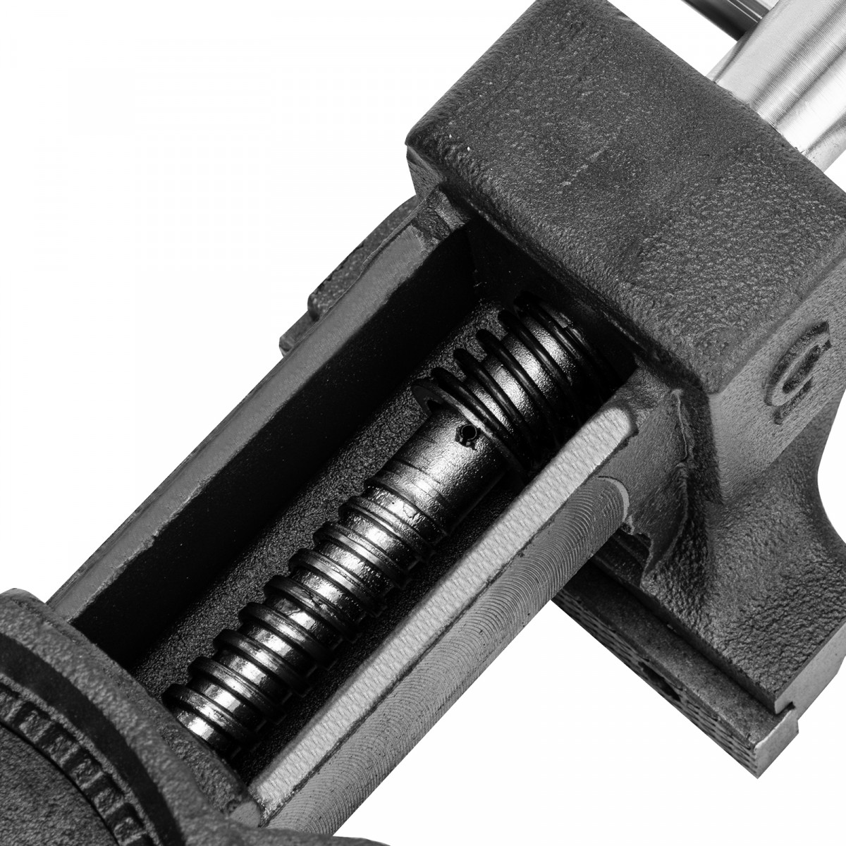 • Функциональность — тиски поворачиваются на 360°, что позволяет менять и выбирать позицию инструмента для удобной работы с заготовкой.