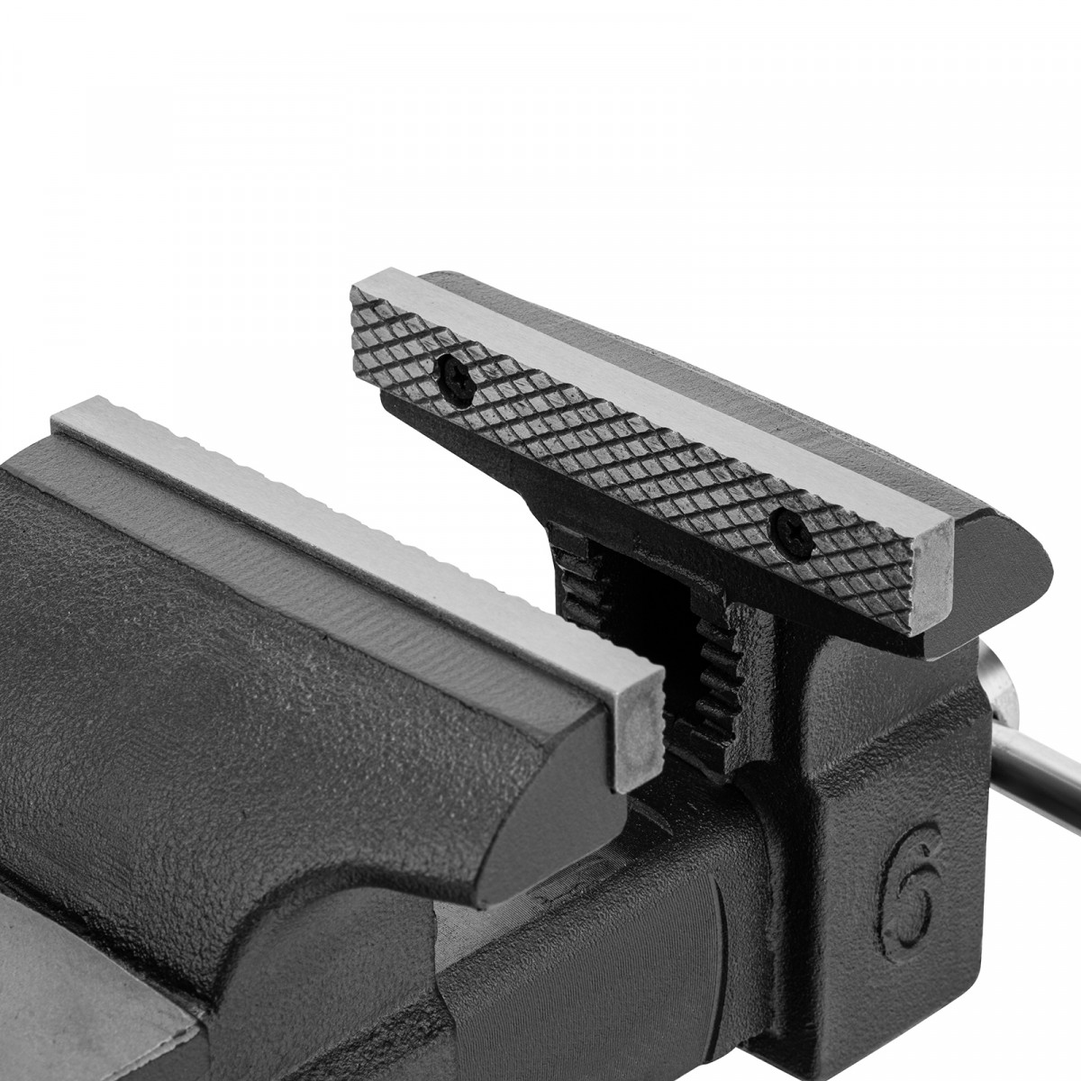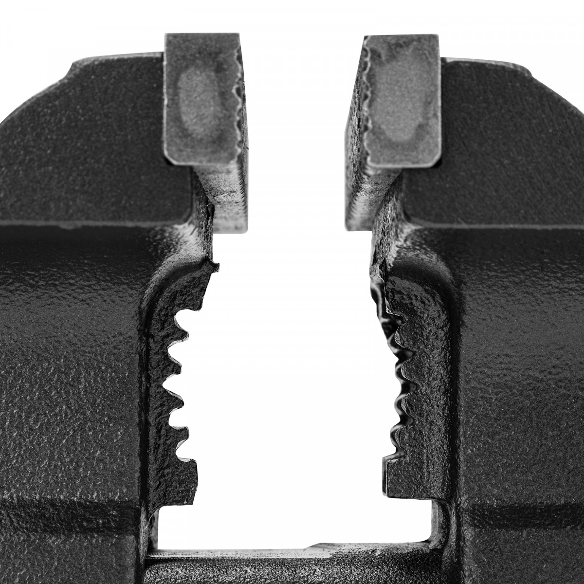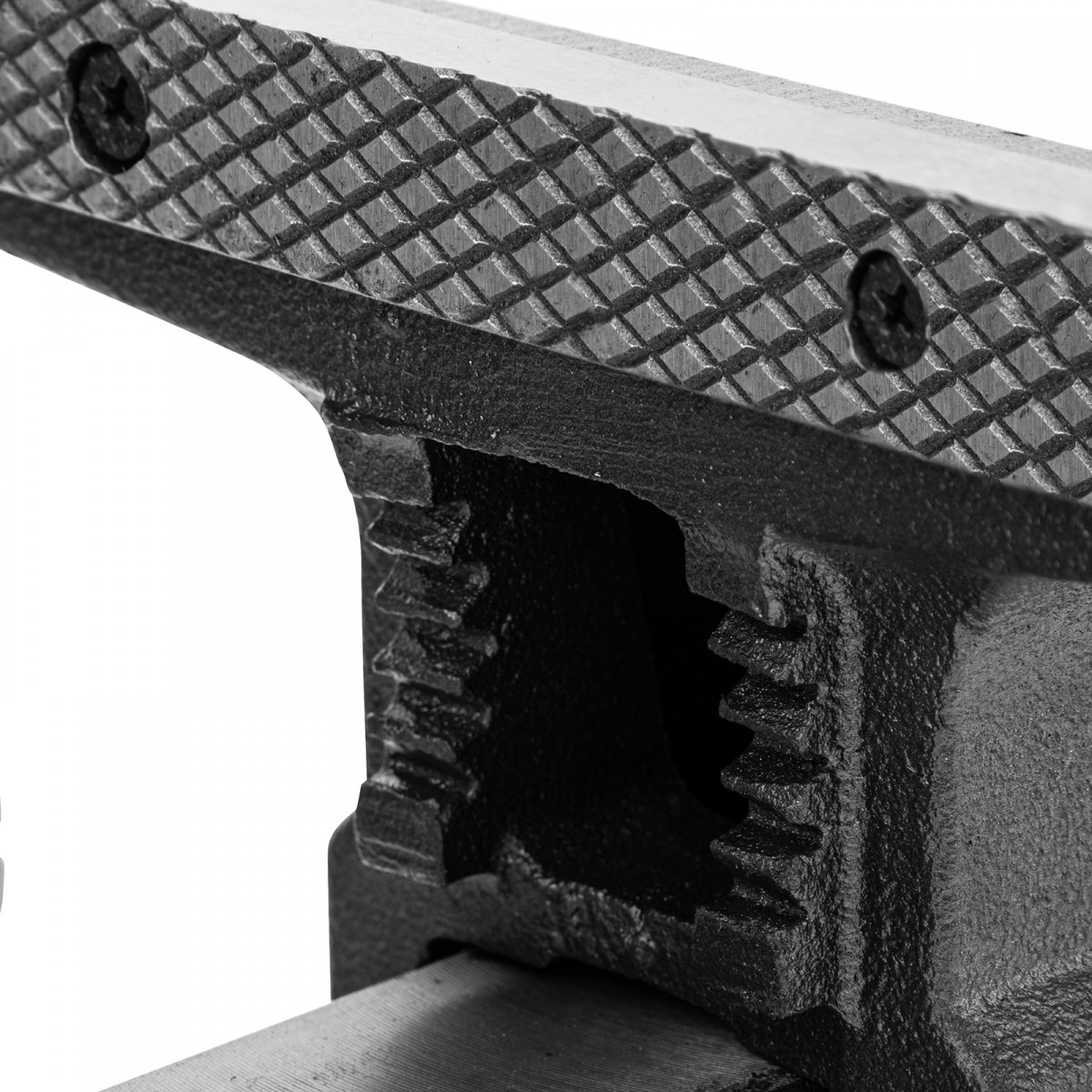 • Функциональность — тиски поворачиваются на 360°, что позволяет менять и выбирать позицию инструмента для удобной работы с заготовкой.