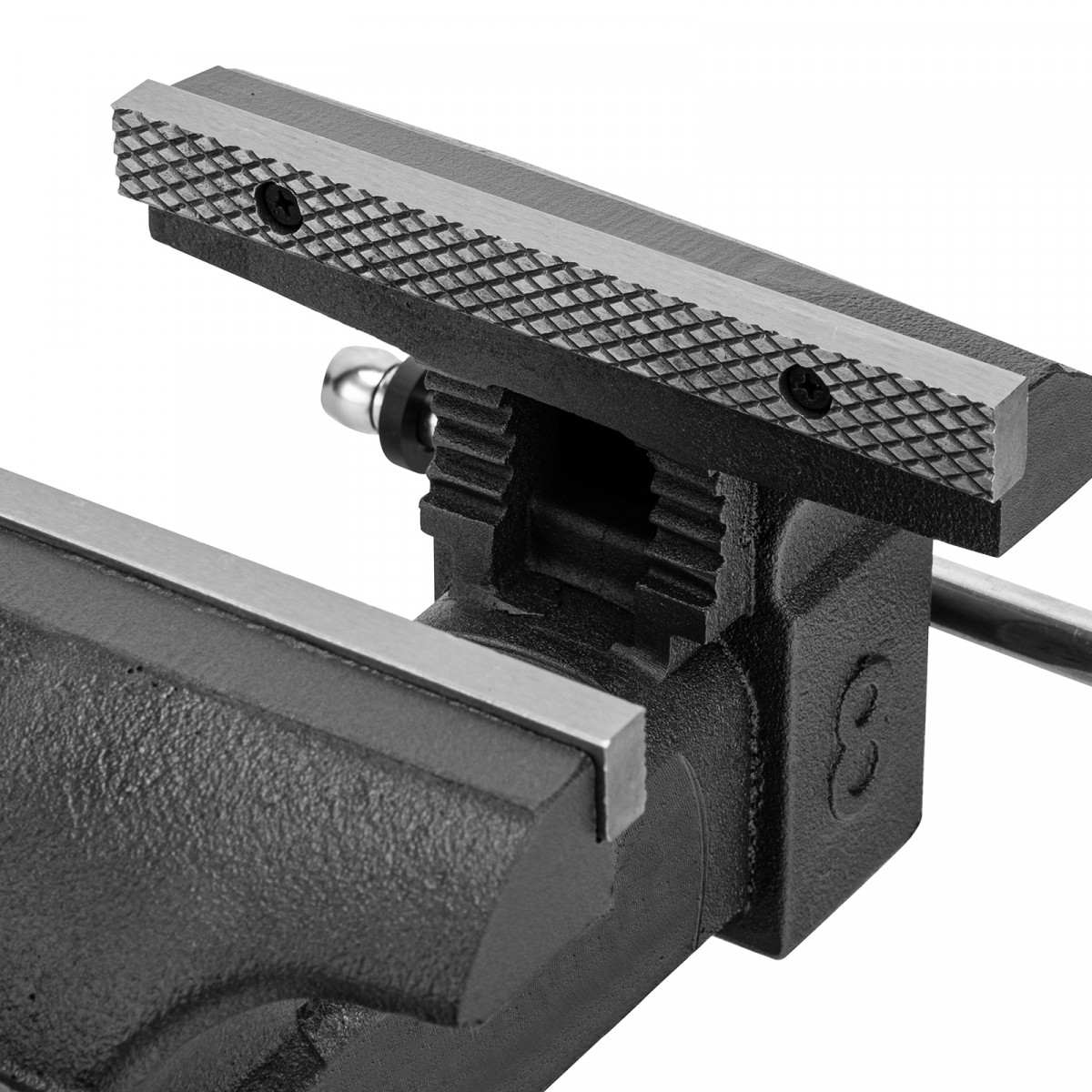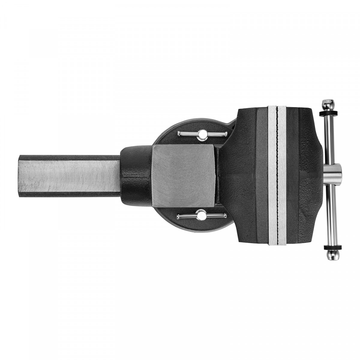 • Функциональность — тиски поворачиваются на 360°, что позволяет менять и выбирать позицию инструмента для удобной работы с заготовкой.
