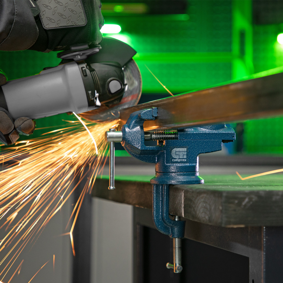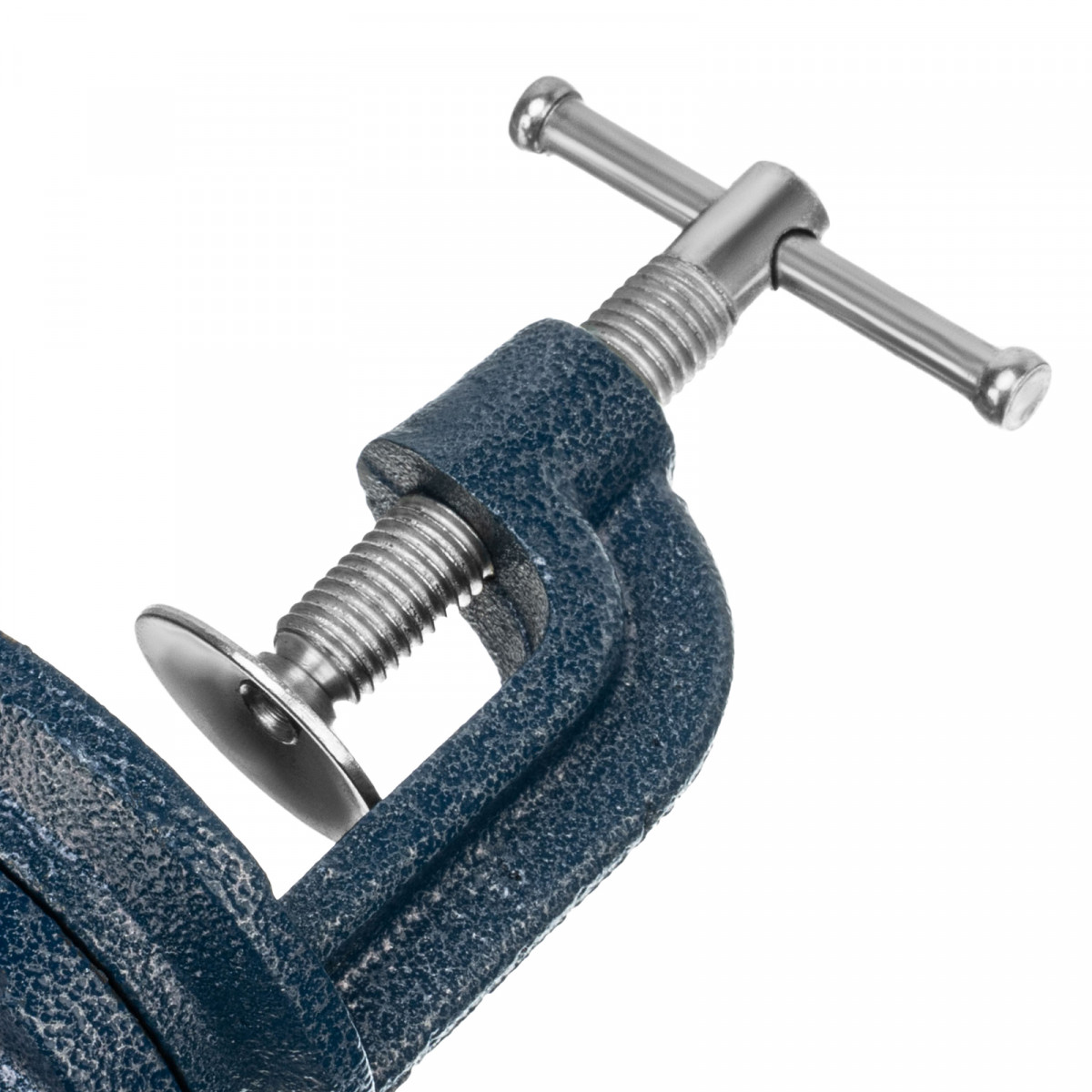 • Винтовой зажим позволяет быстро устанавливать и снимать тиски, поэтому их можно использовать на различных рабочих местах.