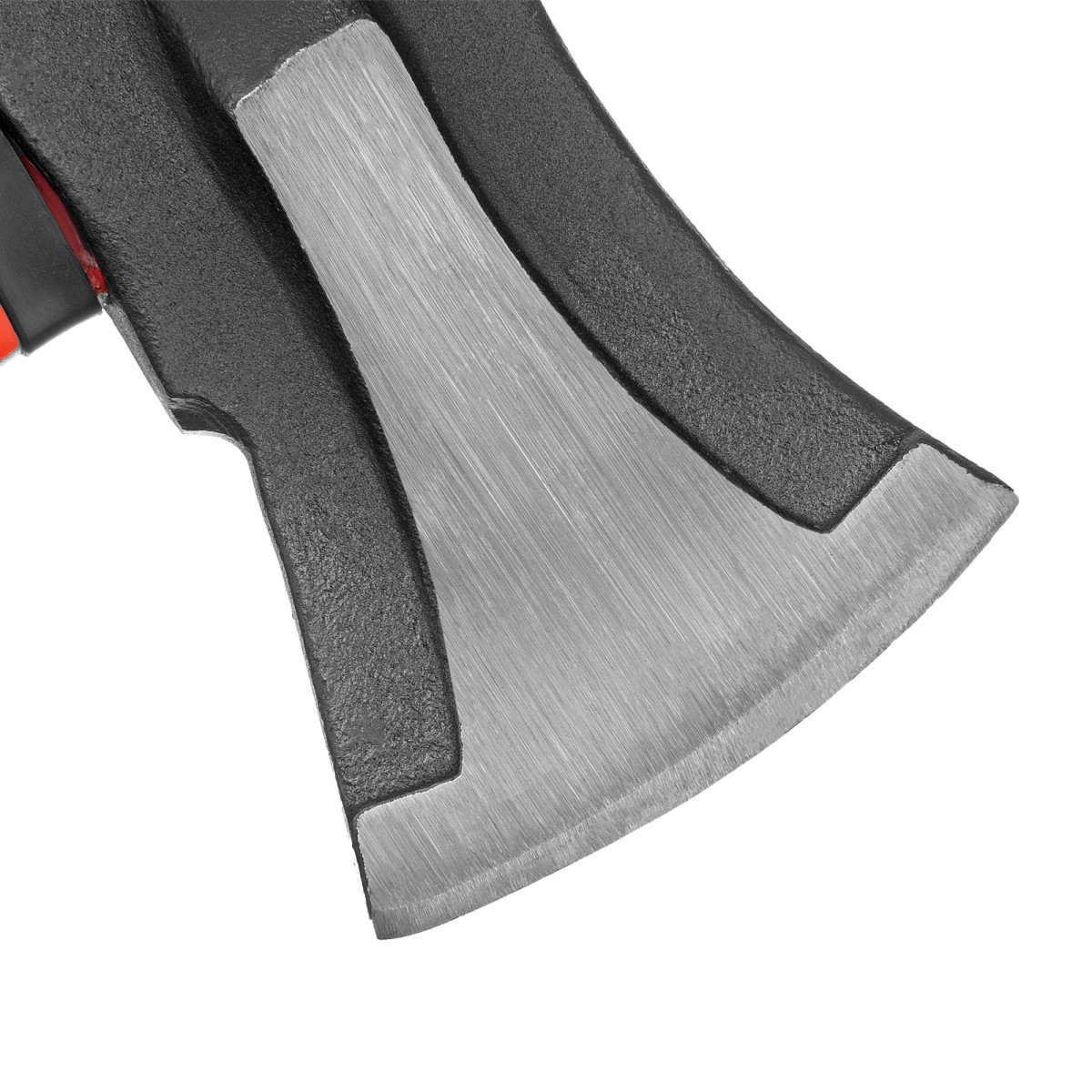 - Комфортная работа — резиновые накладки на топорище поглощают колебания от ударов и обеспечивают надежный хват.