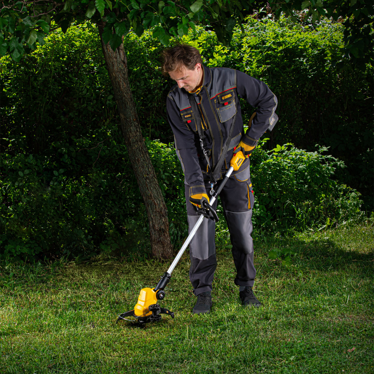 • Равномерное распределение нагрузки — к триммеру прилагается плечевой ремень, позволяющий скашивать траву без ощущения усталости.