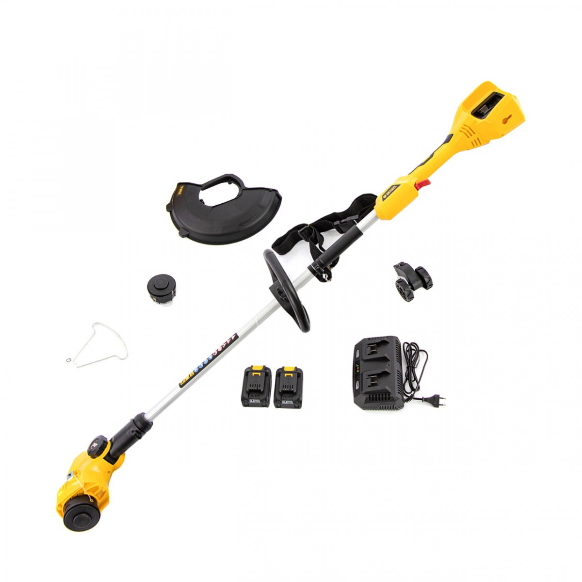 • Полная комплектация — быстродействующее зарядное устройство для двух аккумуляторов поставляется вместе с триммером.