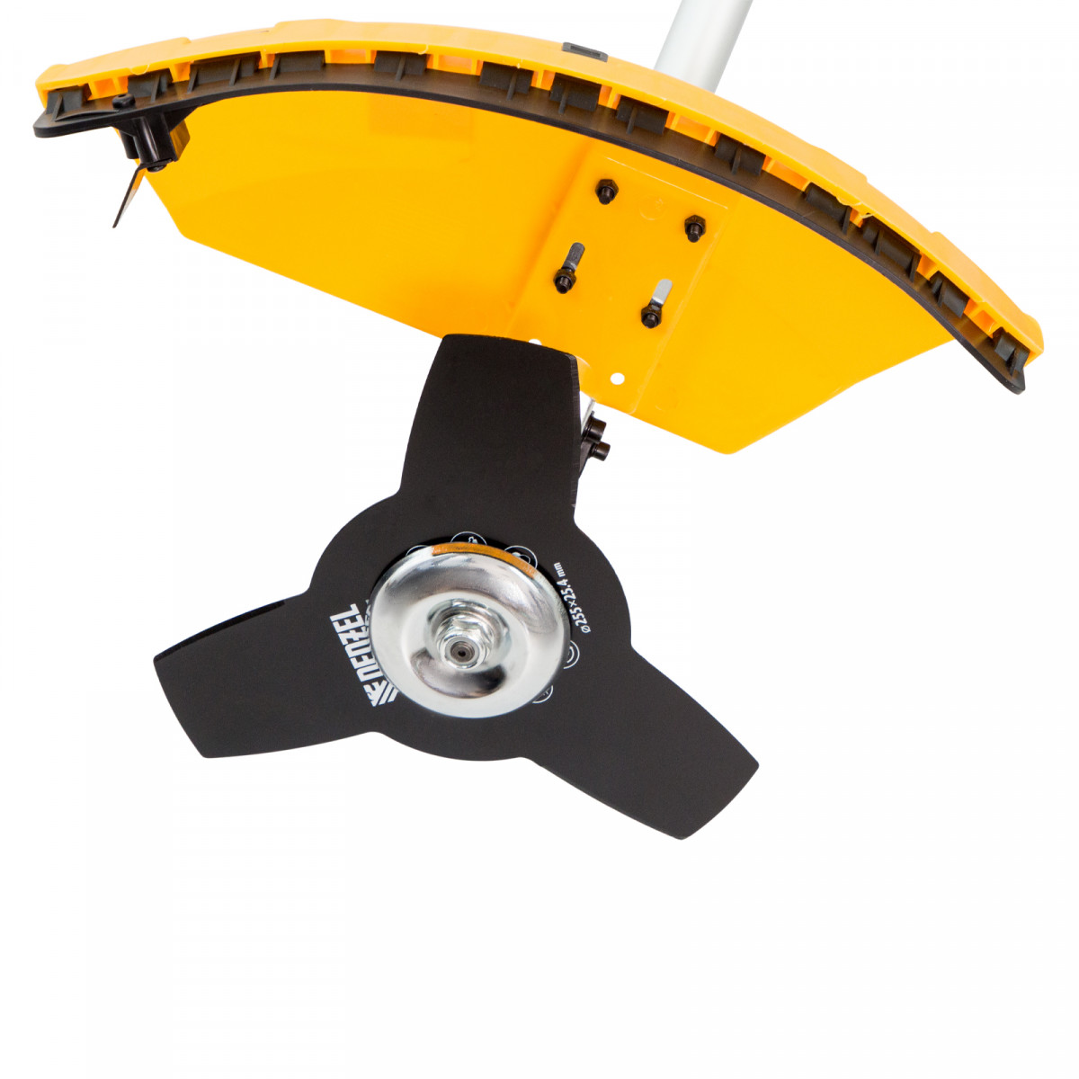 - Защита пользователя от разлетающейся травы и камней — производитель предусмотрел надежный кожух из противоударного пластика.