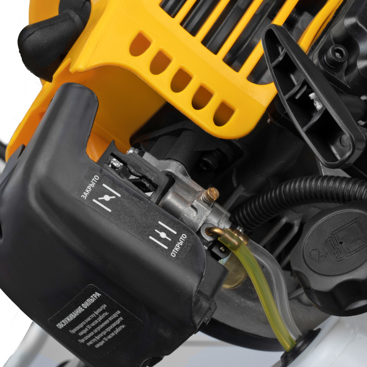 - Легкий запуск в любых условиях — благодаря электростартеру двигатель запускается одним нажатием на кнопку, а праймер для подкачки топлива облегчает запуск после длительного перерыва.