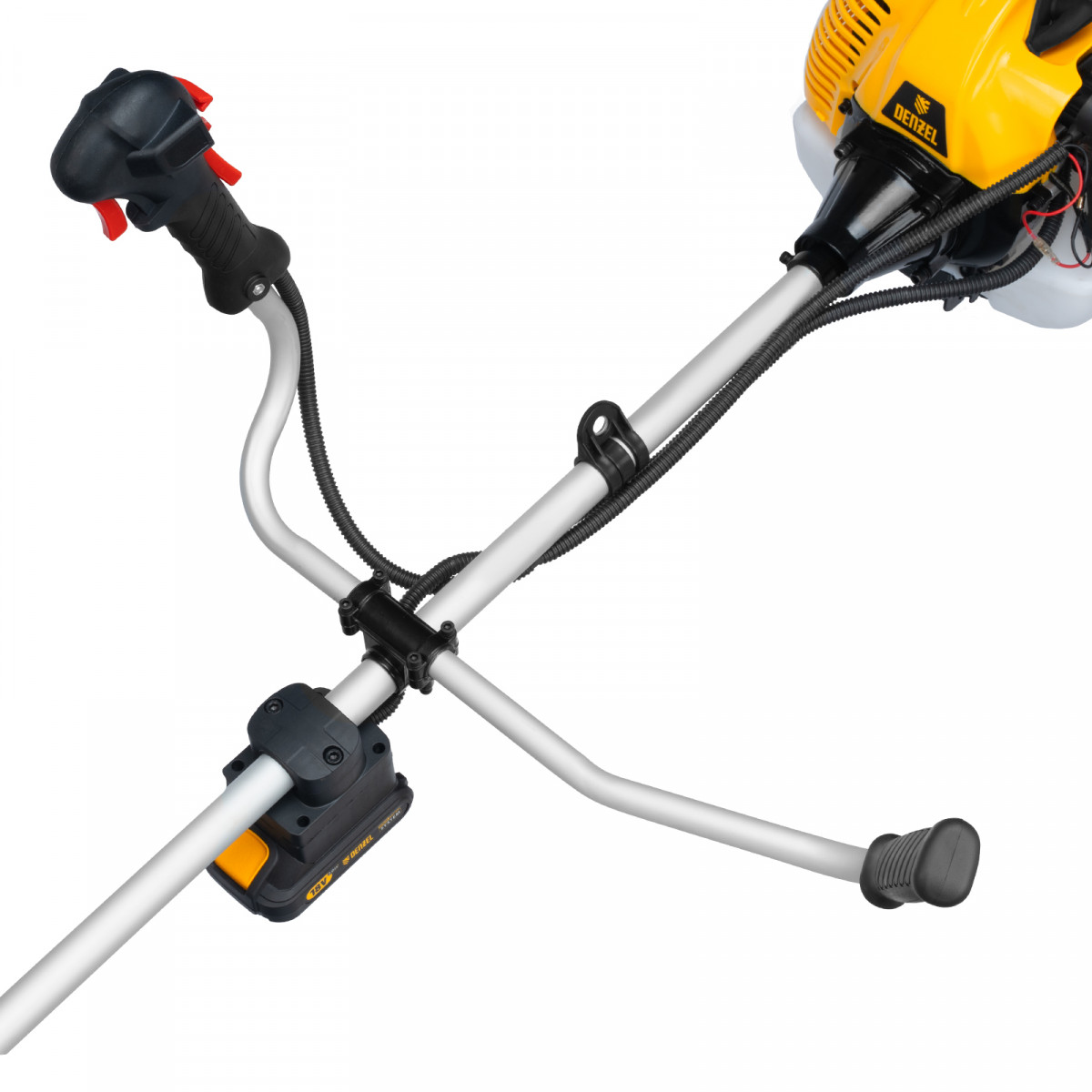 Триммер бензиновый DT-43E, 43 см3, неразъемная штанга, электростартер, состоит из 2 частей Denzel