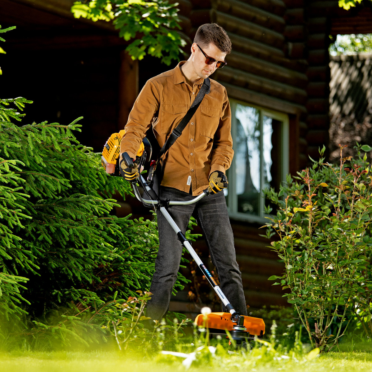 • Малый вес 7,4 кг — триммер удобно держать в руках и маневрировать на сложных участках.