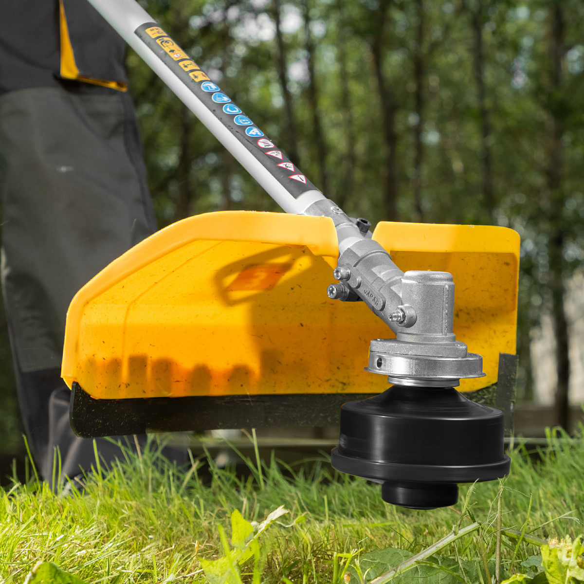 - Удобное хранение и транспортировка — благодаря разборной штанге триммер не занимает много места.