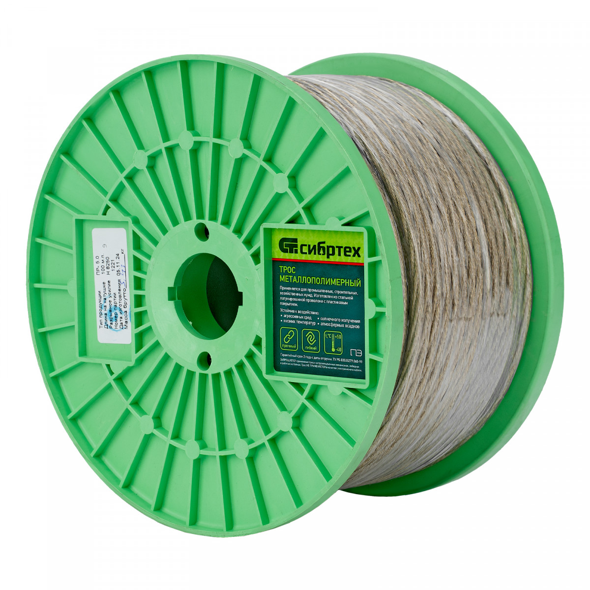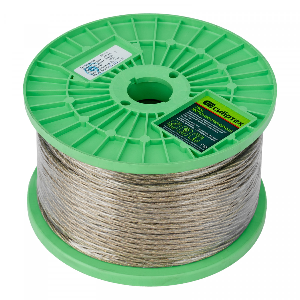 Трос металлополимерный прозрачный ПР-5.0, толщина 4.0 мм, катушка 100 метров Сибртех