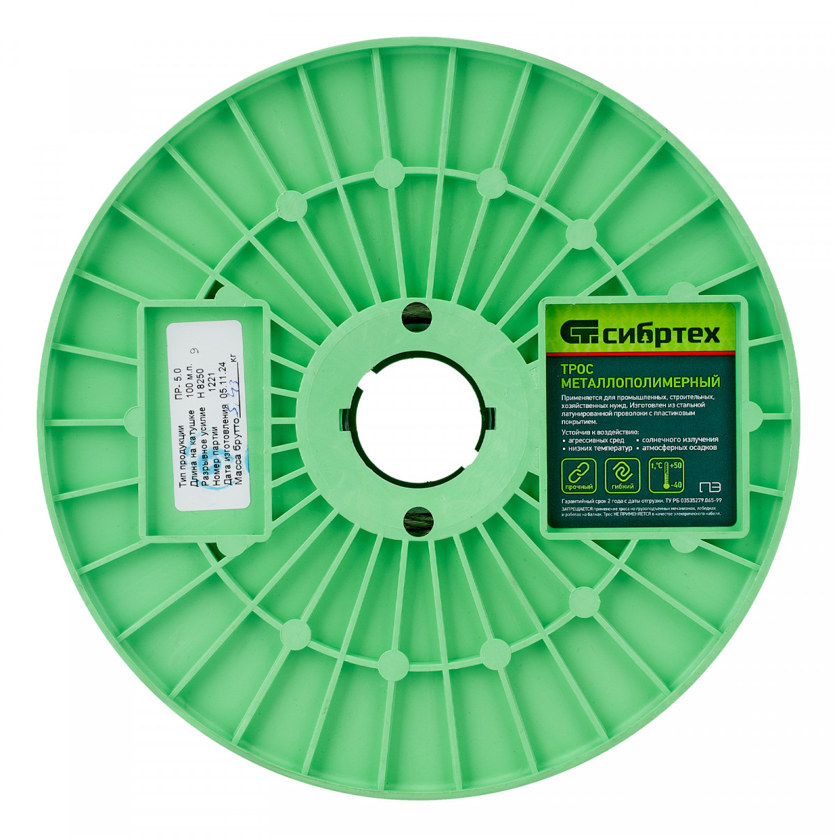 Металлополимерный прозрачный трос ПР-5.0 Сибртех 47632 толщиной 5 мм, 100 м. п. на катушке, используется для монтажа рекламных баннеров, установки ограждений, палаток, теплиц, погружения скважинных насосов и датчиков. Применяется в качестве садового троса-шнура для подвязки растений, а также может служить для развешивания белья. Жила шнура изготовлена из стальной проволоки, поэтому он выдерживает значительные нагрузки.