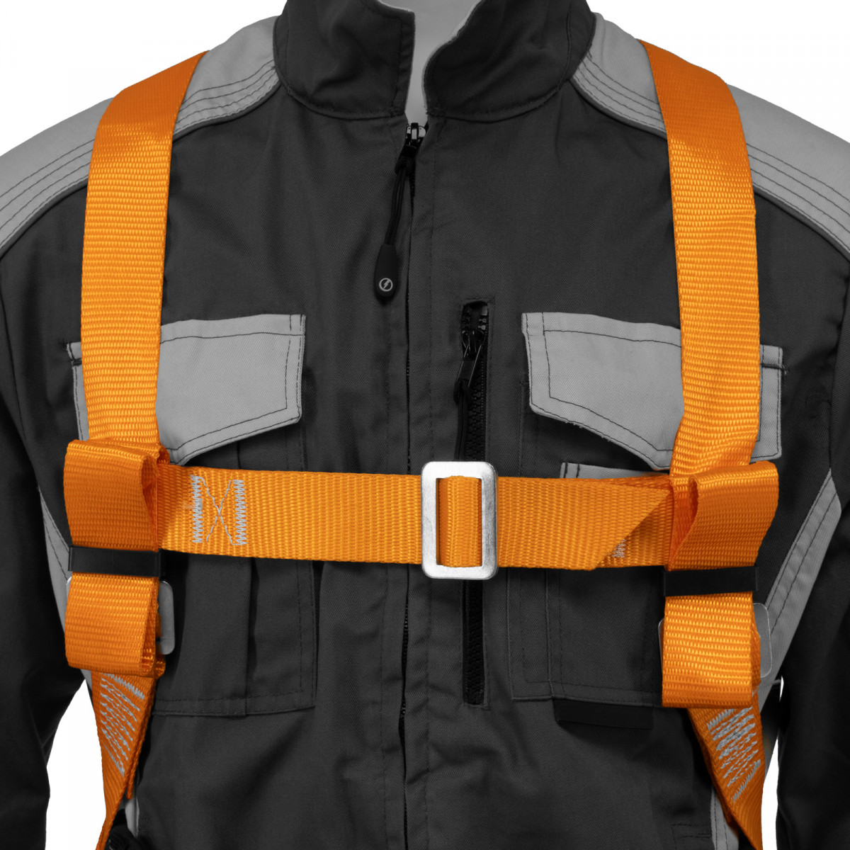 • Удобная конструкция — благодаря вспомогательной ленте на груди привязь быстро пристегивается и отстегивается.