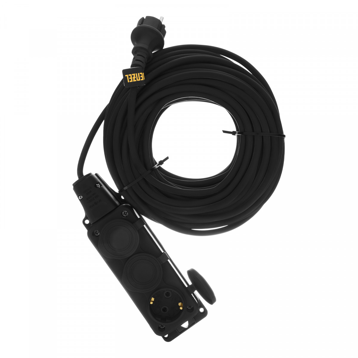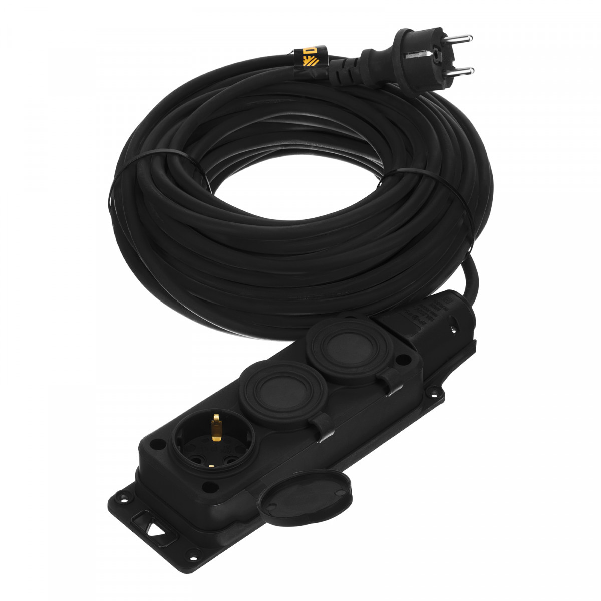 Силовой удлинитель-шнур Denzel Top Series 37422 с 3 розетками, с кабелем КГТТ сечением 3 x 1,5 мм и длиной 20 м, предназначен для подключения электроприборов на удалении от розетки. Суммарная мощность потребителей составляет 3680 Вт для полностью размотанного кабеля и 1840 Вт — для смотанного. Удлинитель подходит для подключения электроинструмента, будет полезен на строительной площадке и в быту.