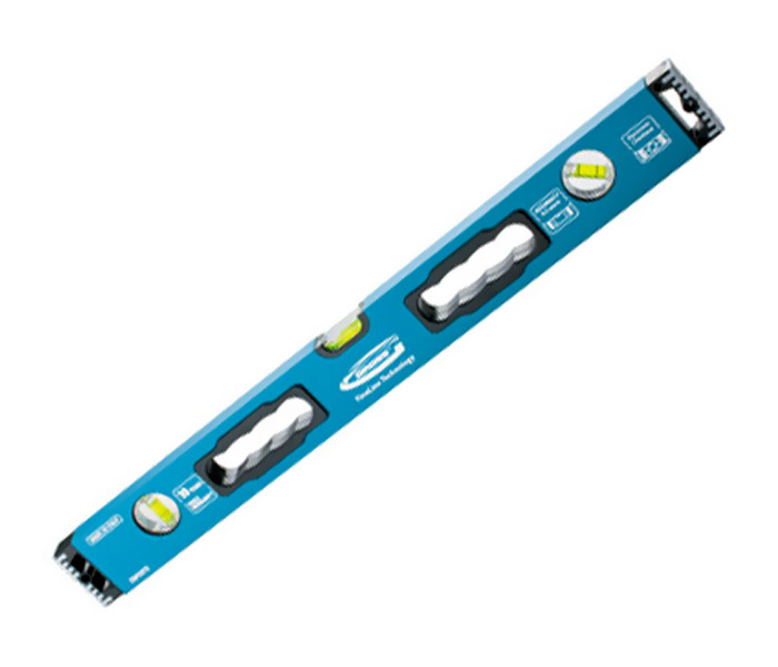Алюминиевый уровень 1800 мм, усиленный с ударопрочными заглушками, рукоятки, 3 глазка GROSS 34338 подойдет для эксплуатации в сложных, стесненных условиях. Для защиты от торцевых ударов есть специальные амортизирующие заглушки. Фрезерованная подошва обеспечивает качественные и точные измерения.