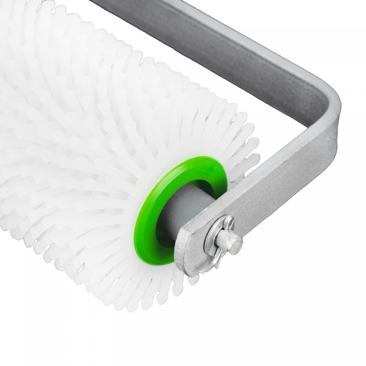 Игольчатый валик Сибртех 81103 длиной 400 мм используется для монтажа наливных полов. Позволяет удалять пузырьки воздуха из толщи еще жидкого покрытия путем его интенсивного прокатывания по распределенному на поверхности основы раствору. Валик длиной 400 мм можно использовать на поверхности большой площади. Длина иголок 13 мм оптимальна для покрытий небольшой толщины.