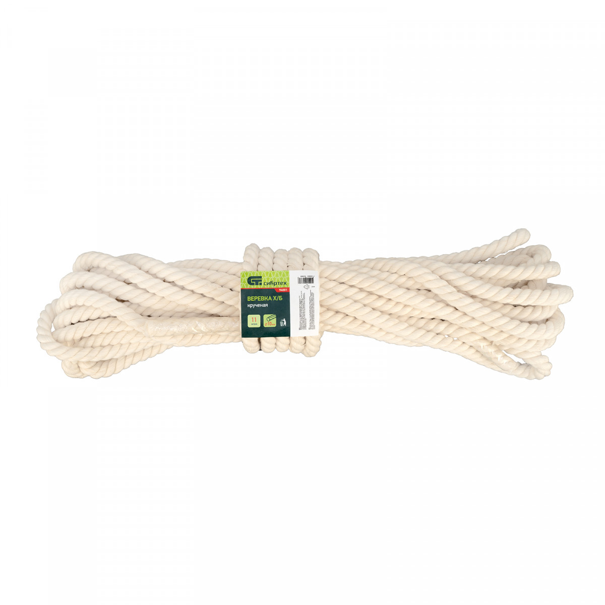 Крученая х/б веревка Сибртех 94001, 10 мм, L 11 м, используется в домашнем хозяйстве и для грузоперевозок, а также в садоводстве, туризме, промышленности. Благодаря толщине 10 мм изделие обладает необходимой прочностью.