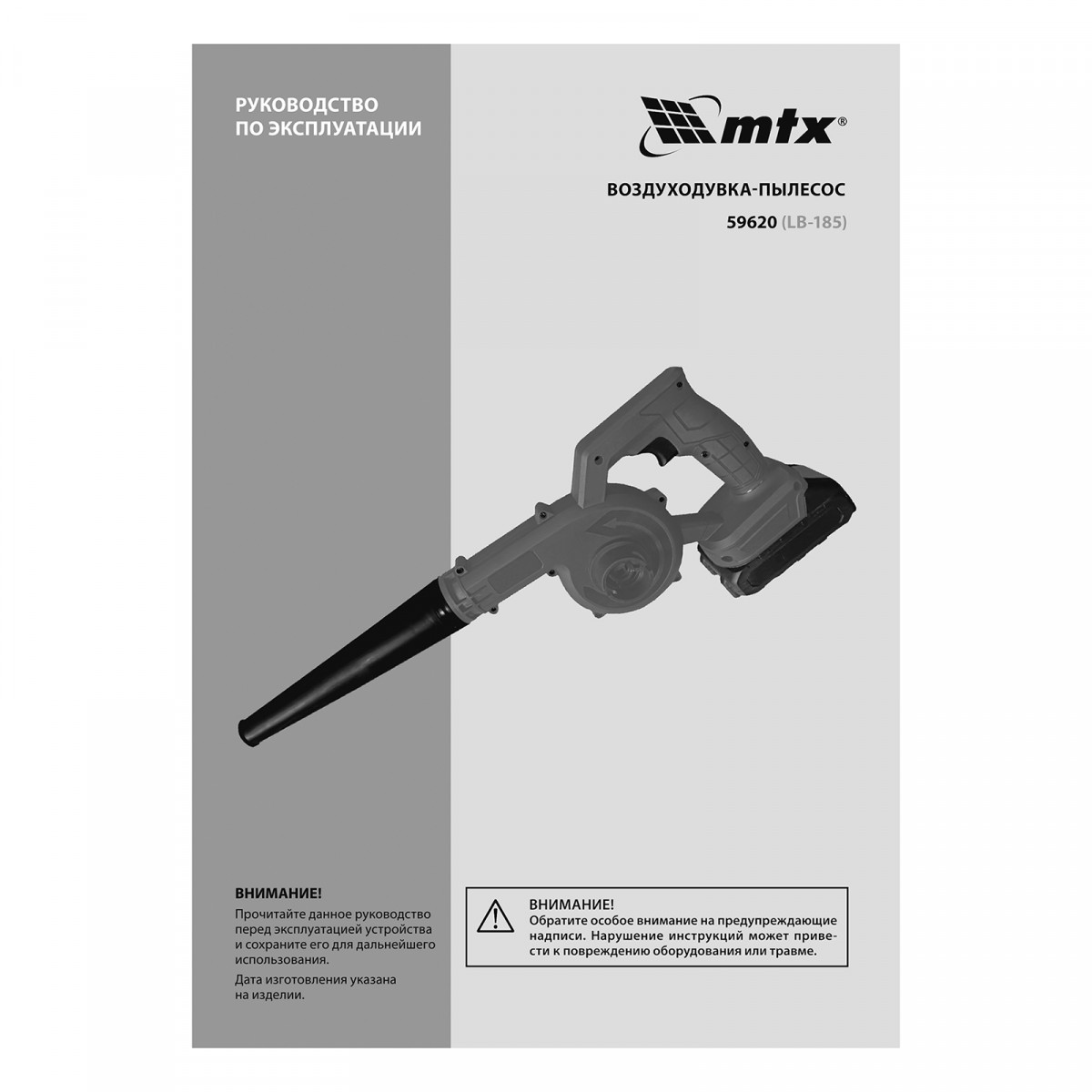 Воздуходувка-пылесос акк. портативная, LB-185, 35 м/с, 170 м3/ч, Li-Ion, 20 В MTX