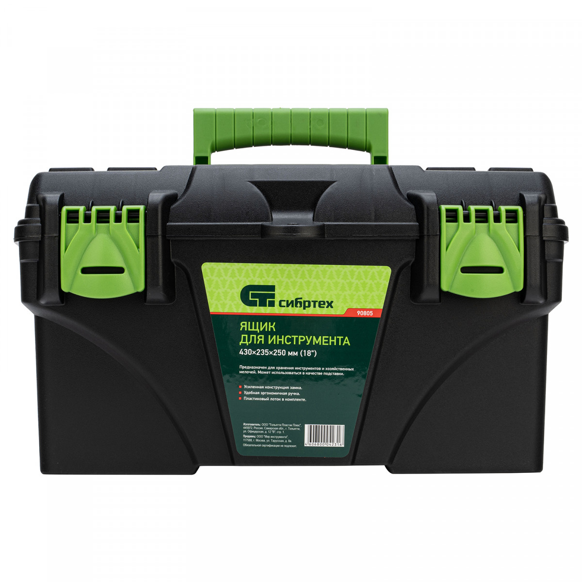 Ящик для инструмента, 430 х 235 х 250 мм, 18", пластик Сибртех
