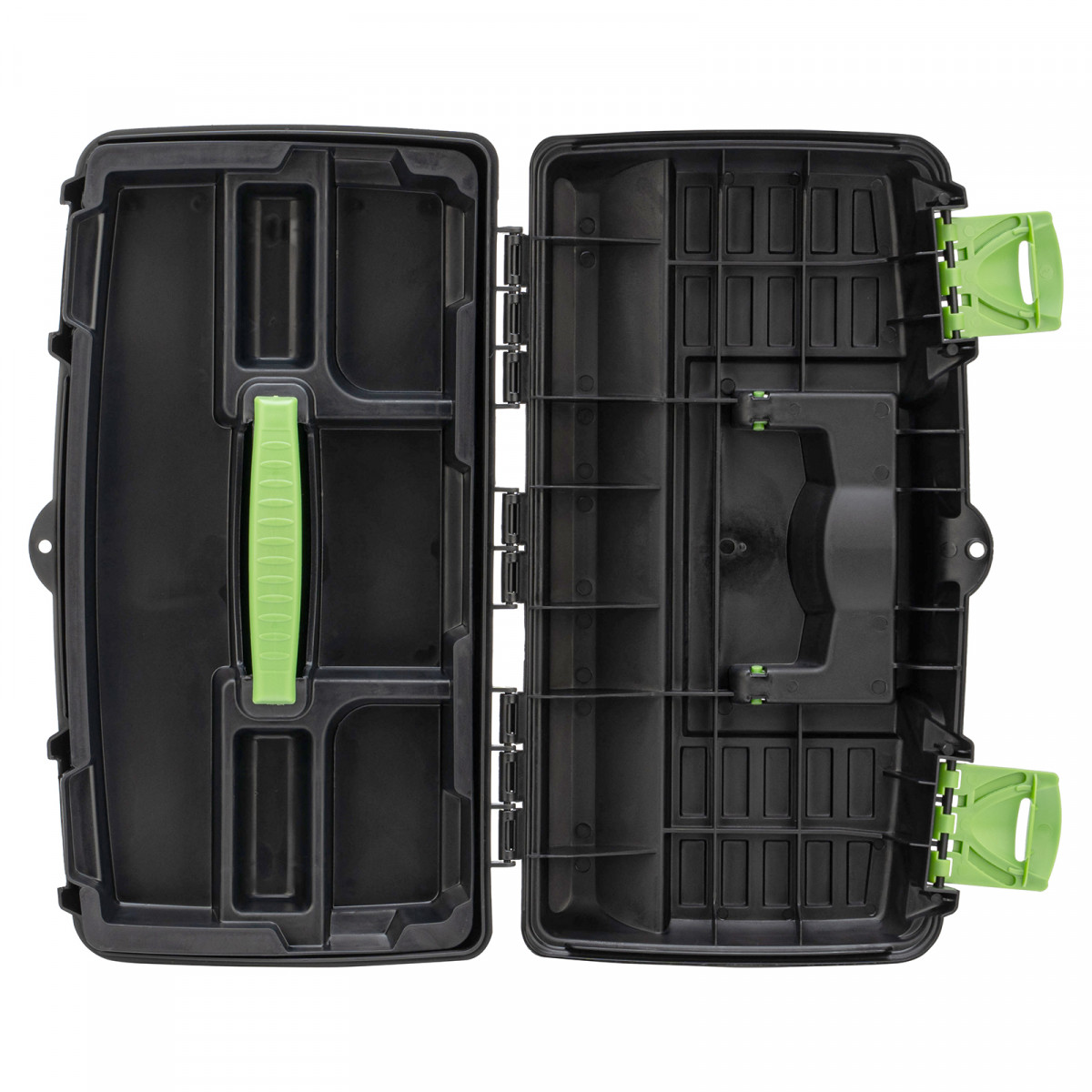 - Усиленная конструкция — замки и верхняя крышка установлены на 3-рядные петли, поэтому ящик выдерживает значительный вес.