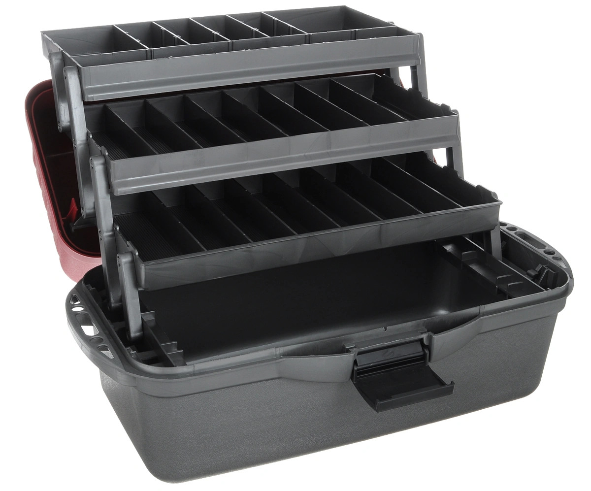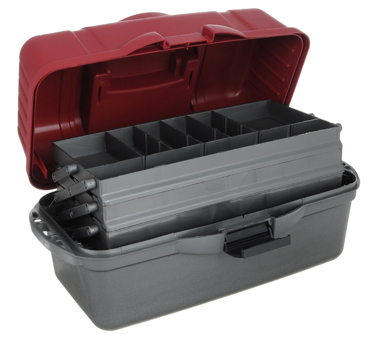Удобный и вместительный ящик с тремя выдвижными полками для различной рыболовной оснастки: поплавков, приманок, крючков и другой полезной мелочи. Количество секций варьируется от 24 до 34. На дно ящика можно положить 1-3 спиннинговых катушек. Материал: ударопрочный полипропилен. Размеры ящика: 400 х 200 х 220 мм. Вес: 1,45 кг.