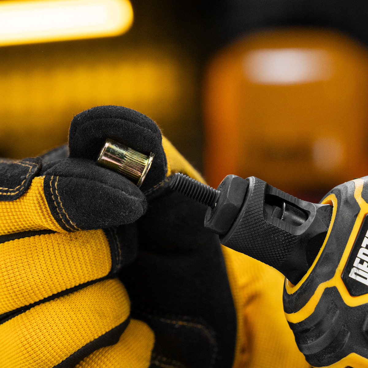 - Удобное хранение и транспортировка — заклепки поставляются в прочном пластиковом кейсе с защелкой.