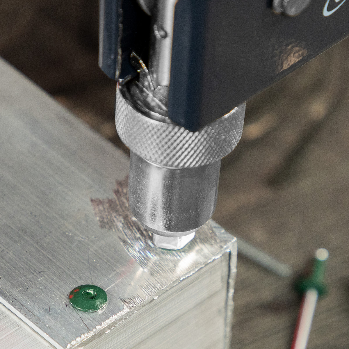 • Быстрая установка насадок — сменные головки для заклепок разных диаметров размещены на корпусе, монтажный ключ для их замены входит в комплект поставки.